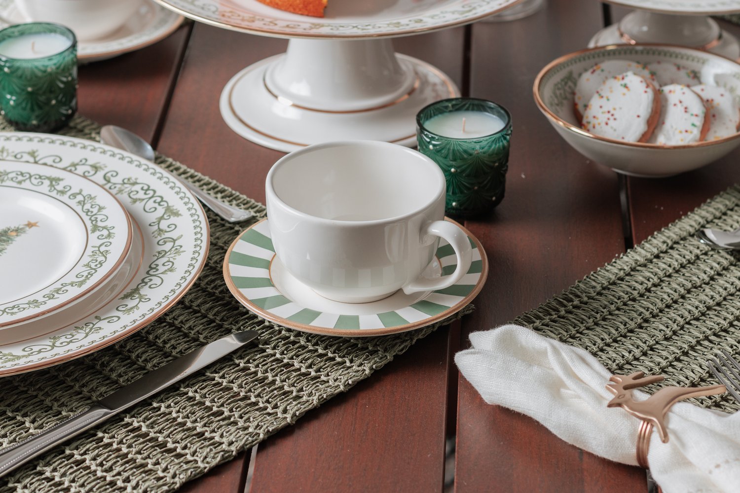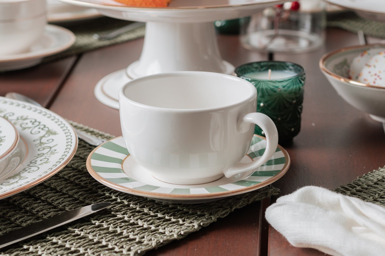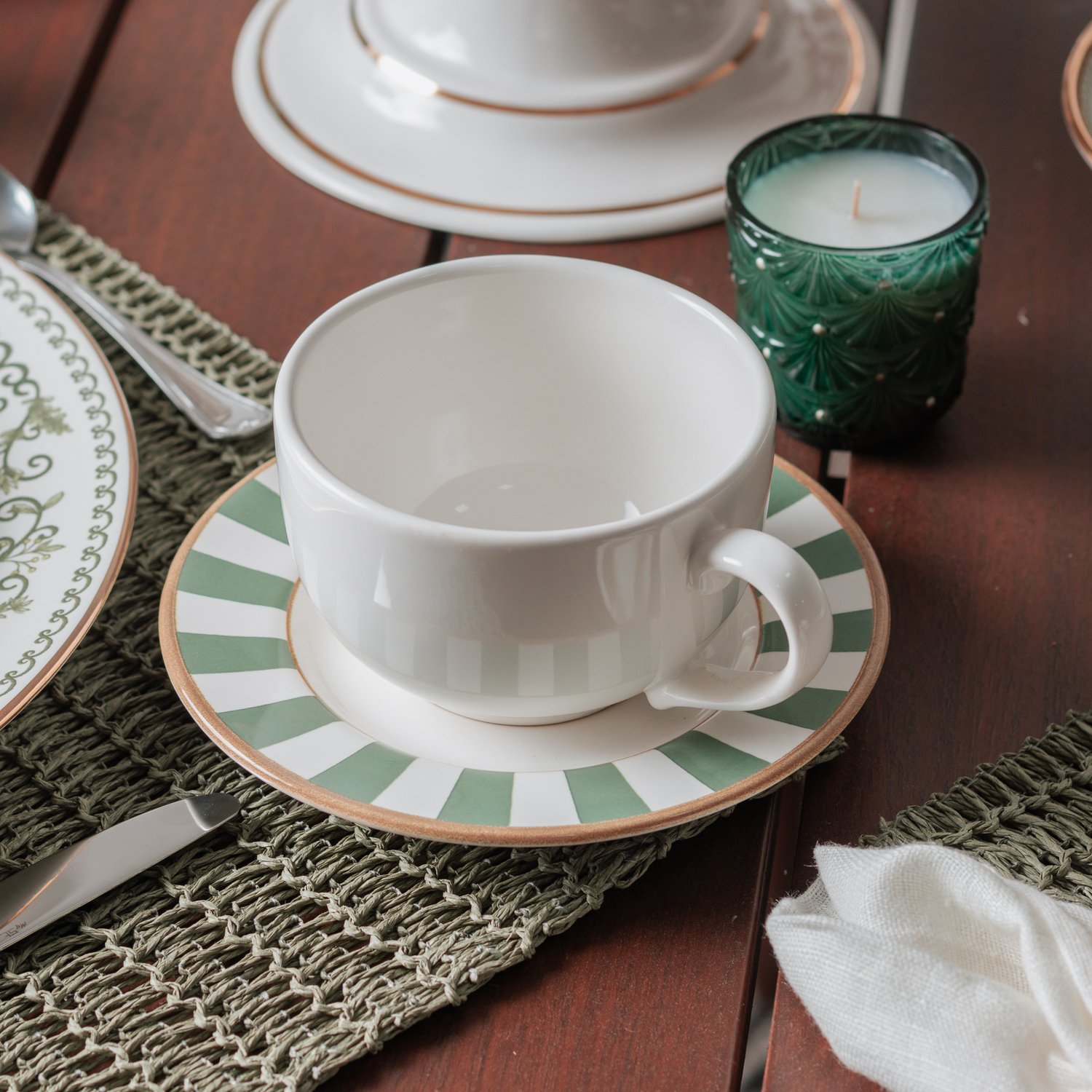 Jogo 06 Xícaras De Chá Com Pires Stripe Verde Alleanza Cerâmica 250 ml