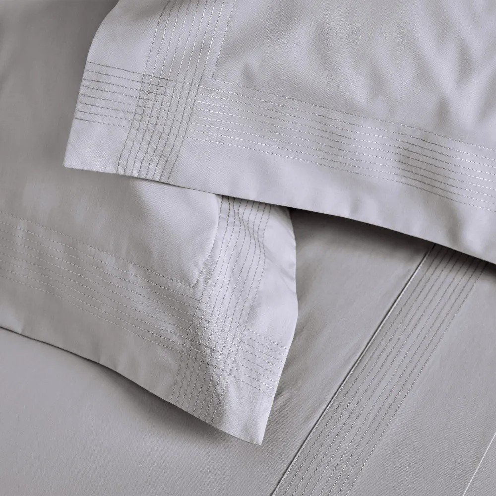Acabamento | Tecido sanforizado e mercerizado. Fronha com 3 abas e aplicação de linhas confeccionadas. Toque acetinado. |