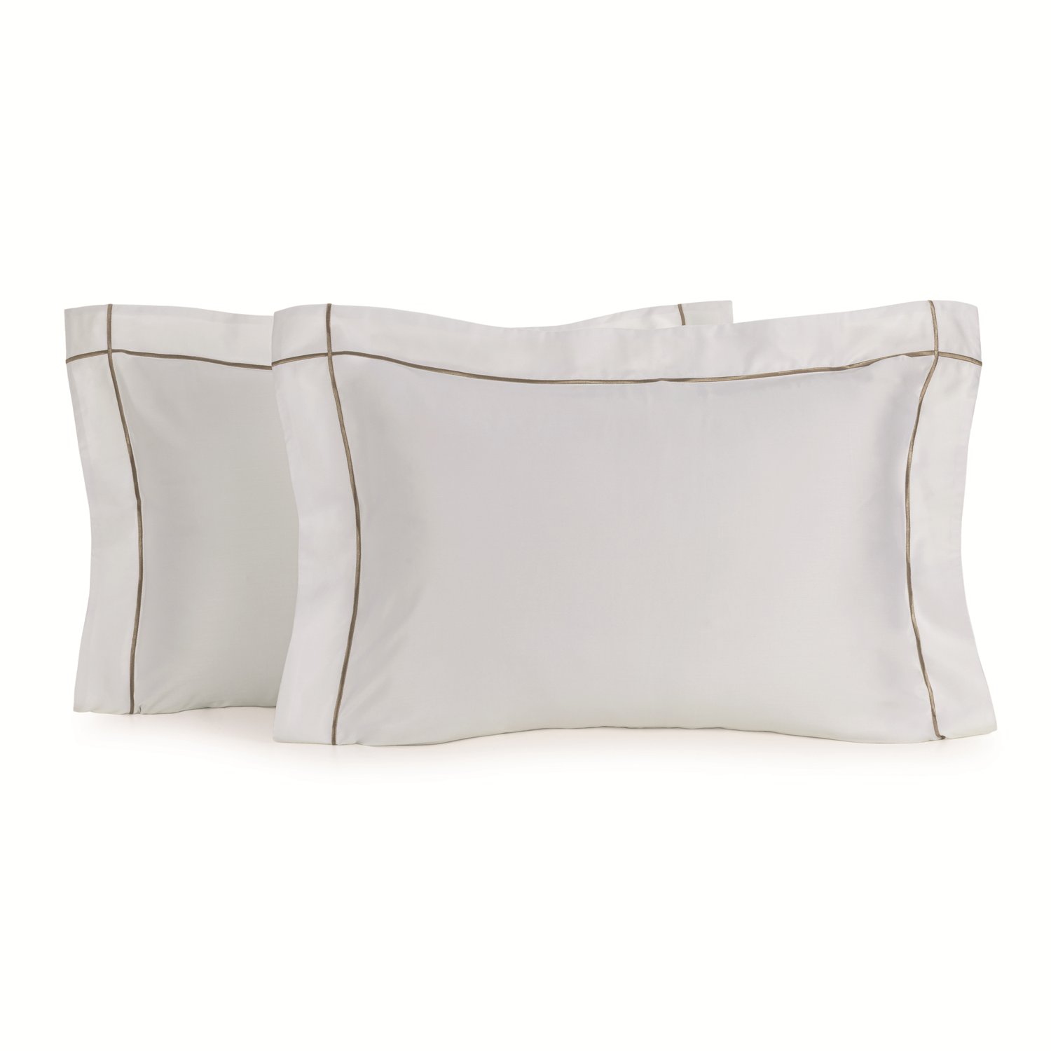 Jogo 2 Fronhas Girelli Bambu 300 Fios Trussardi Branco e Nocciola 50cm x 70cm