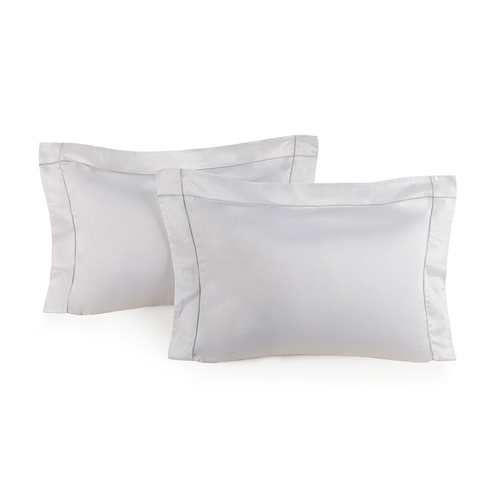 Jogo 2 Fronhas Girelli Bambu 300 Fios Trussardi Branco/Platino 50 x 70 cm