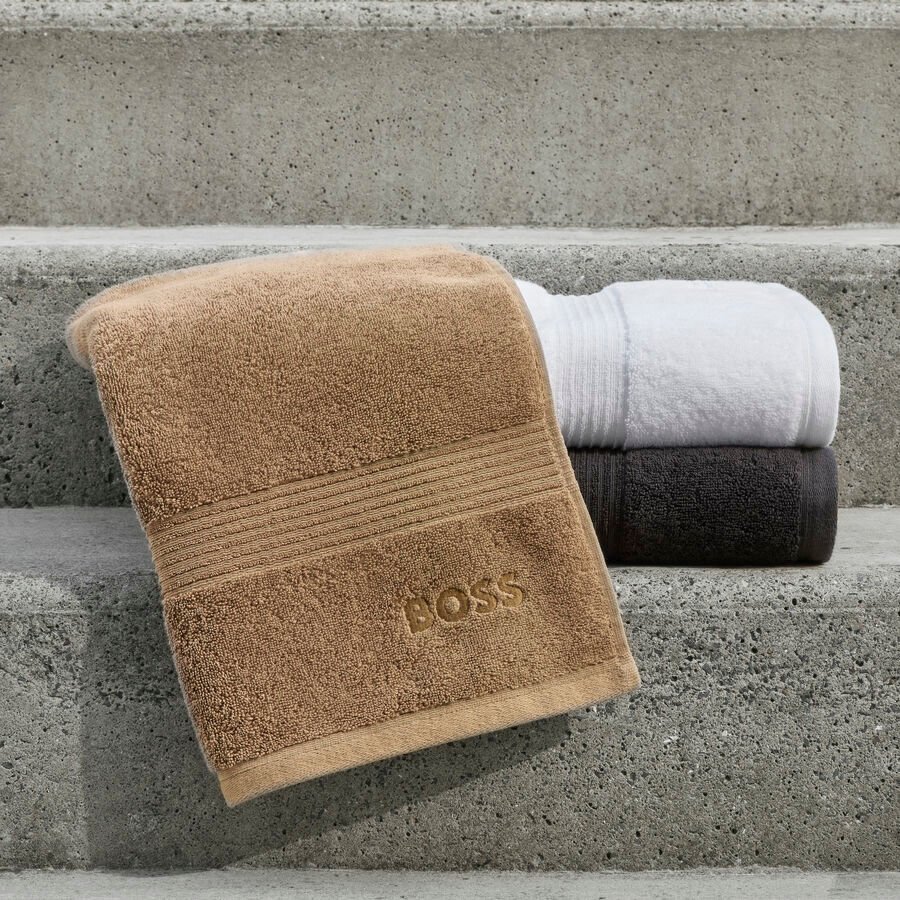 A linha Boss Home reflete as coleções de roupas da marca, oferecendo qualidade superior e estilo impecável. As roupas de cama, roupões e toalhas, assim como todos os acessórios Hugo Boss utilizam matérias-primas macias e naturais. Os detalhes dos designs nas roupas de cama são inspirados por sua alfaiataria de acordo com o icônico terno Hugo Boss, moderno, elegante e estruturado.