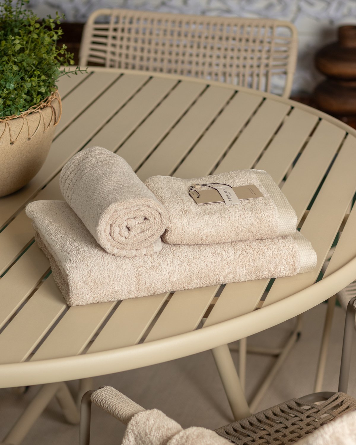 Acabamento | Super absorção, Pré-encolhida, Fio penteado de baixa torção, Tecnologia Cotone Speciale |