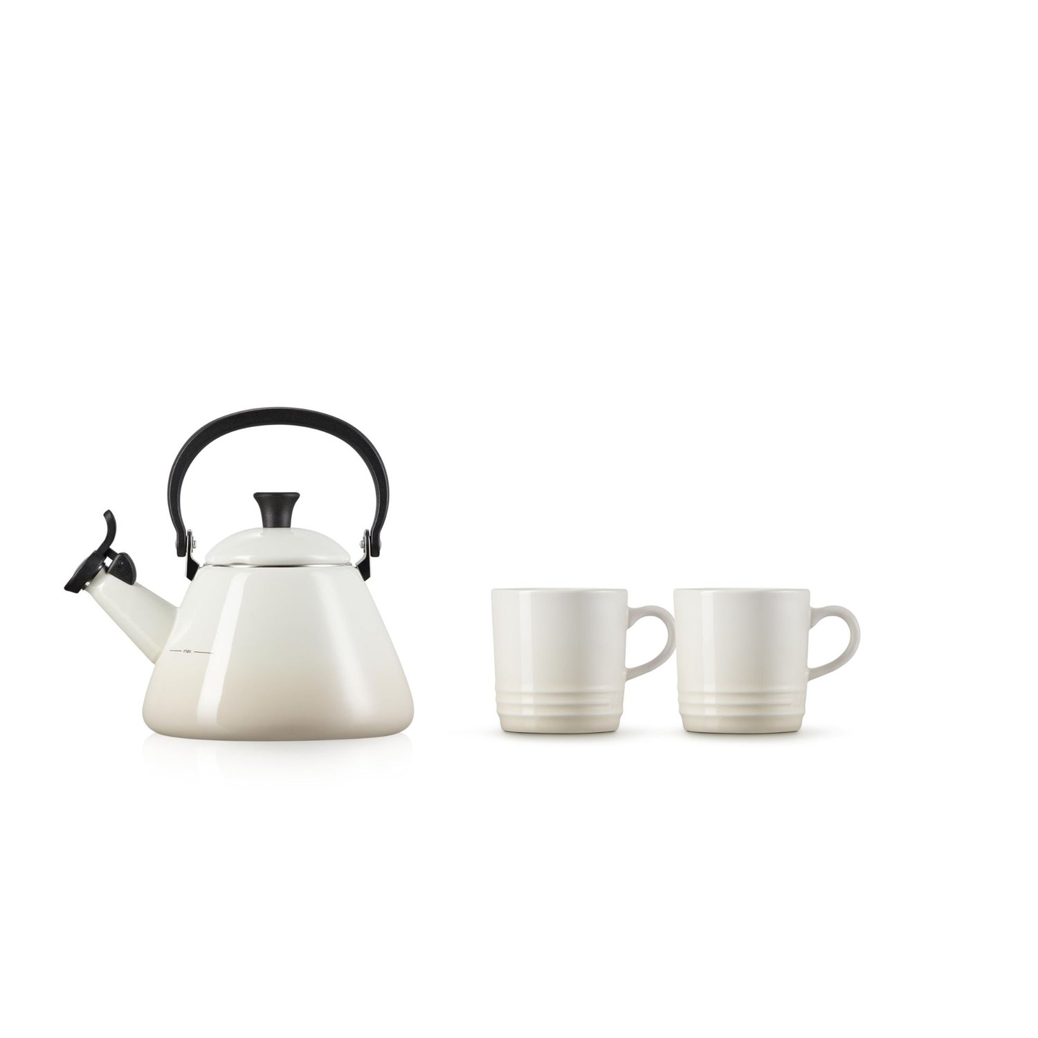 Chaleira com Apito Kone Le Creuset Meringue 1,6 Litros Quant: 1xCaneca de Cerâmica Le Creuset Meringue 350 ml Quant: 2x