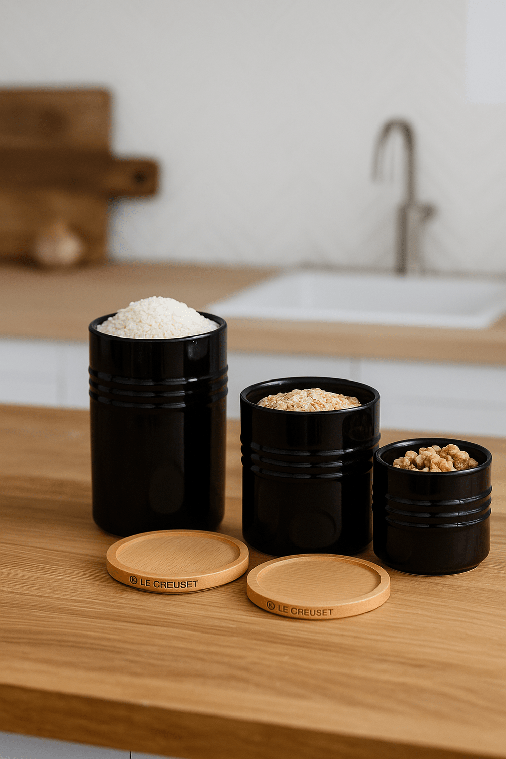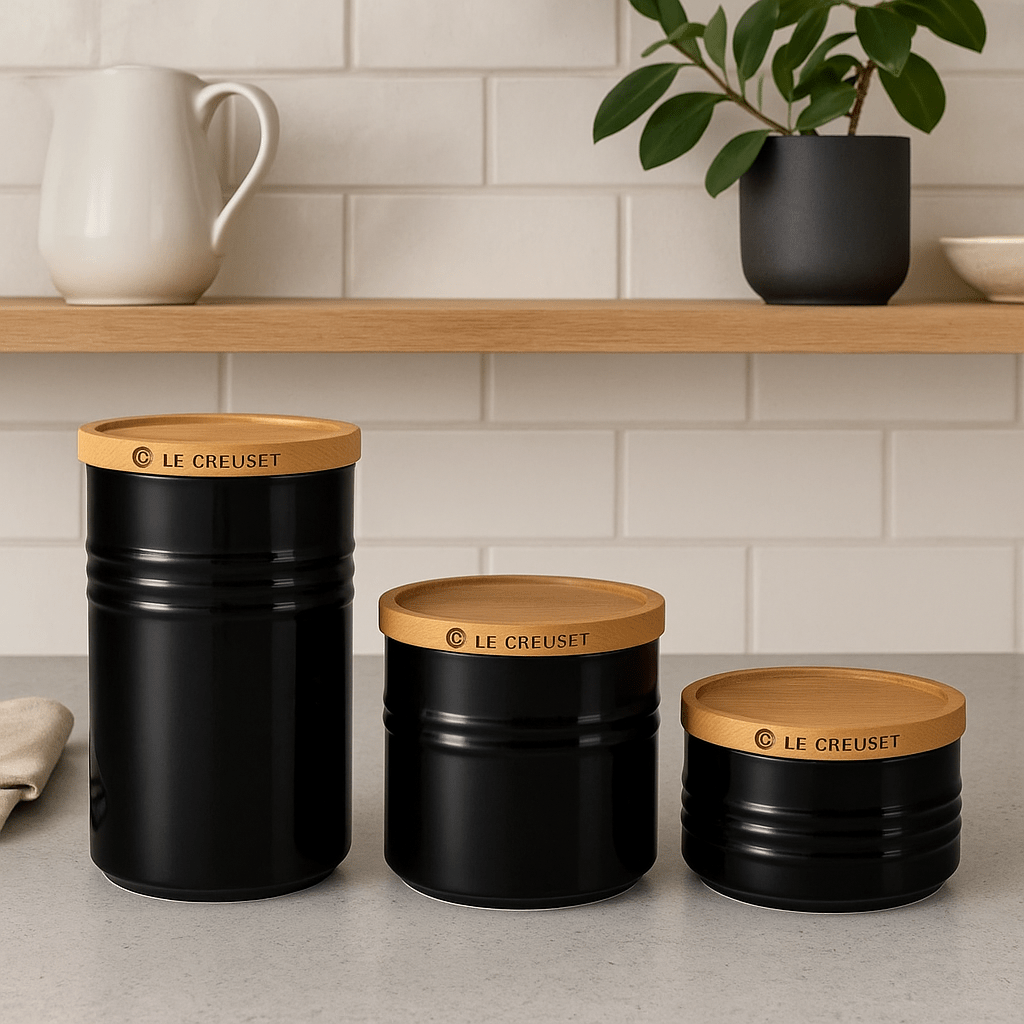 Disponíveis em quatro tamanhos diferentes para oferecer máxima eficiência de armazenamento, esses elegantes e coloridos potes de armazenamento possuem uma tampa de madeira de faia com vedação hermética, que permite empilhamento fácil tanto na bancada quanto em armários. O acabamento esmaltado resistente tornam esses potes tão funcionais quanto bonitos.