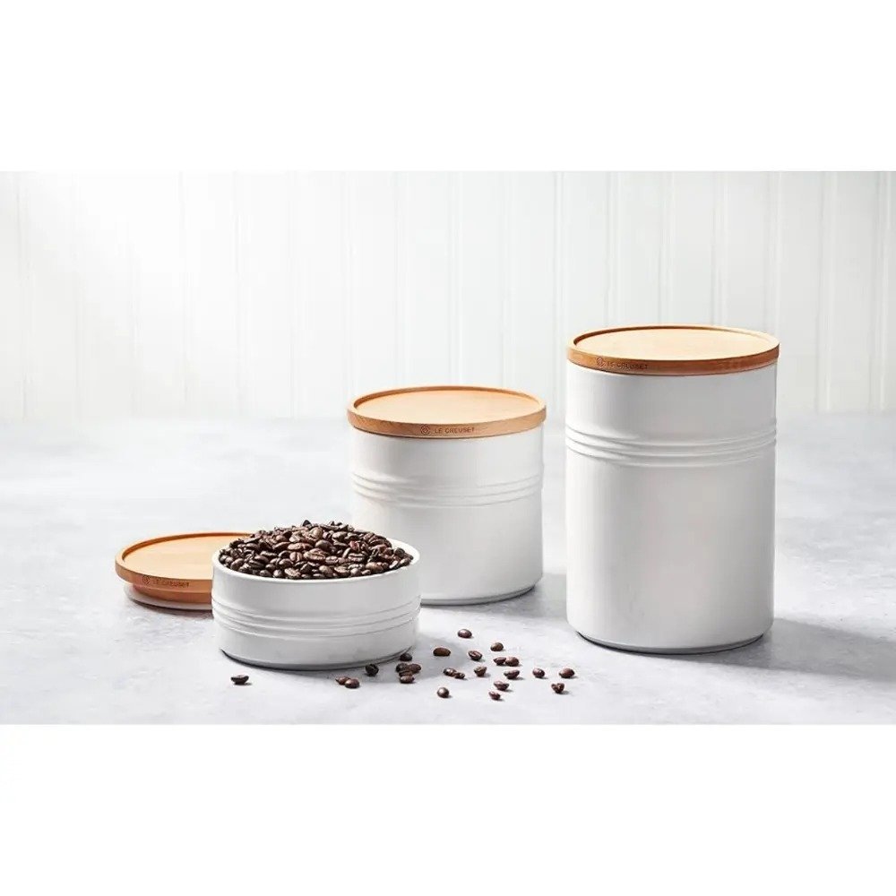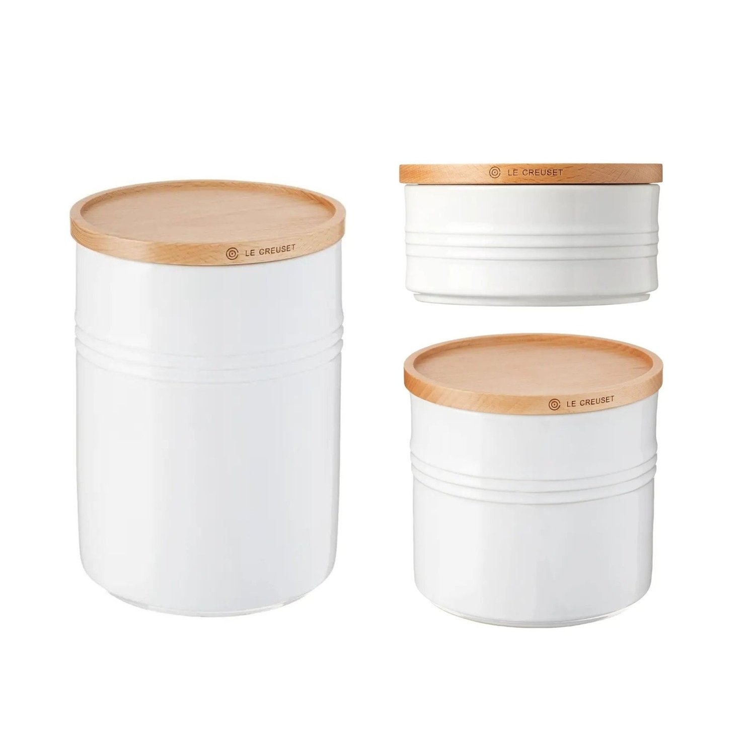 Disponíveis em quatro tamanhos diferentes para oferecer máxima eficiência de armazenamento, esses elegantes e coloridos potes de armazenamento possuem uma tampa de madeira de faia com vedação hermética, que permite empilhamento fácil tanto na bancada quanto em armários. O acabamento esmaltado resistente tornam esses potes tão funcionais quanto bonitos.