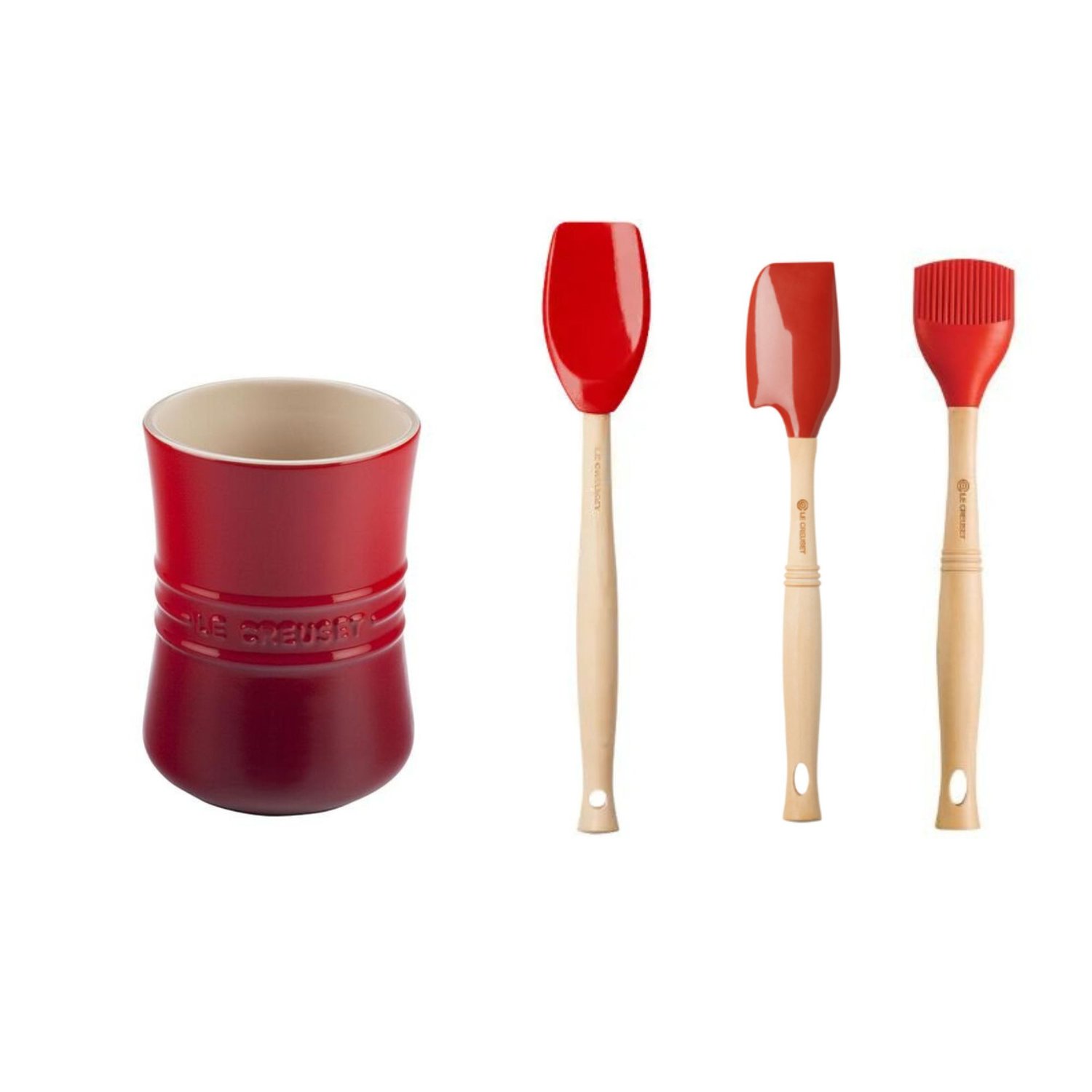 Colher De Silicone Grande Vênus Le Creuset Vermelho Quant: 1xPorta Utensílios Signature Le Creuset Vermelho 1l Quant: 1xEspátula de Silicone Média Vênus Le Creuset Vermelho Quant: 1xPincel De Silicone Vênus Le Creuset Vermelho Quant: 1x