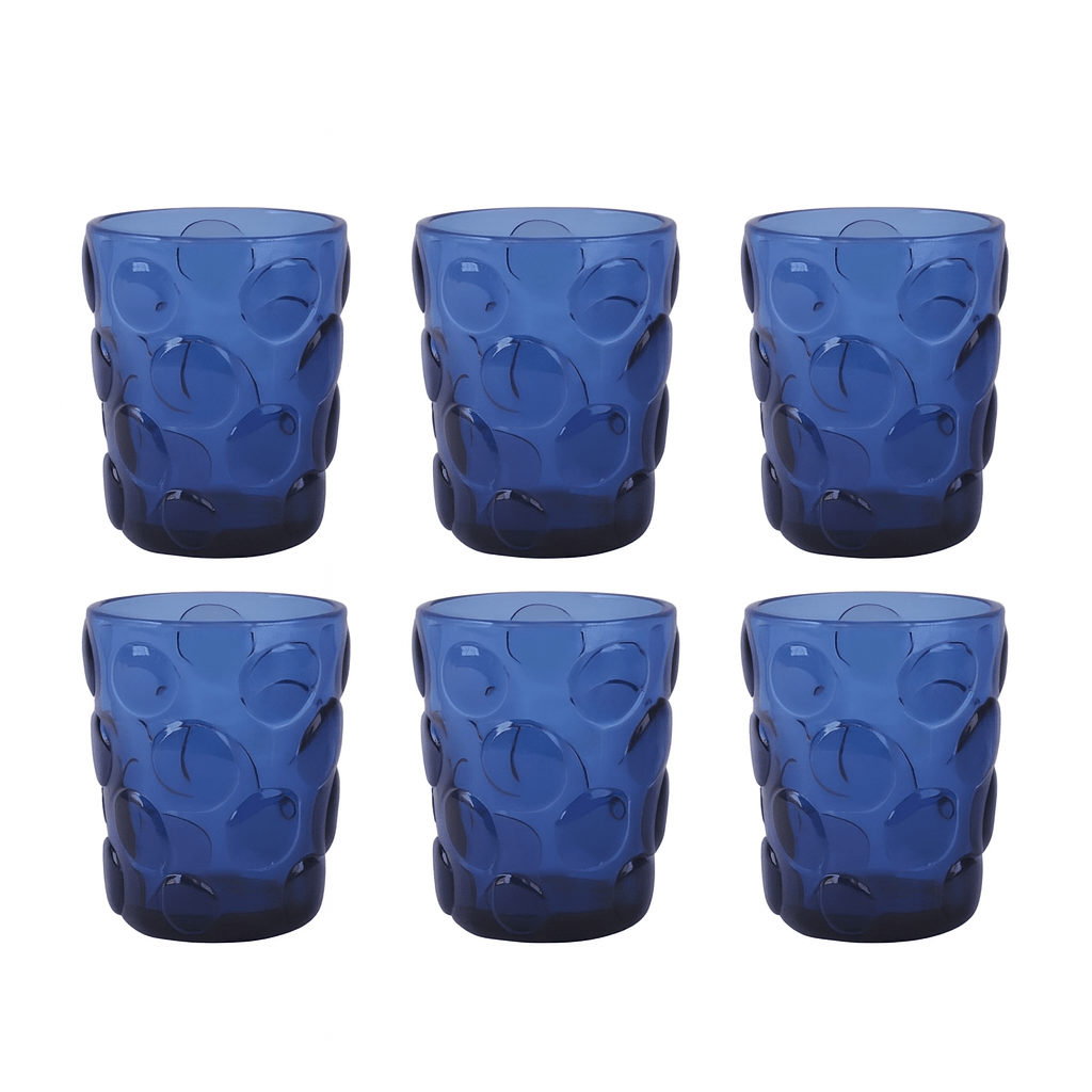 Informações do Produto Material Vidro Cor Azul Composição 06 Copos Dimensão (cm) 8.2CM X 8.2CM X 10.5C