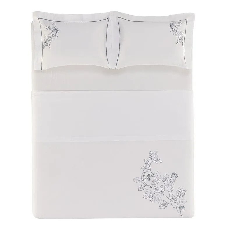 O Jogo de Cama Aster branco com bordados é a escolha perfeita para quem busca elegância e sofisticação na decoração do quarto. Seu tecido macio e acabamento detalhado com bordados delicados trazem um charme atemporal.