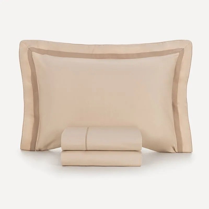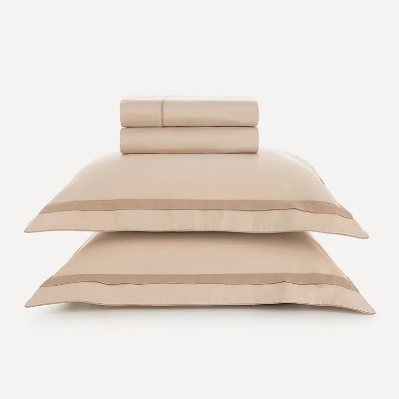 Com toque moderno e elegante, o jogo de cama Lara se destaca pelos detalhes em cordonê e filete contrastante presentes nas fronhas e na vira do sobre lençol. Confeccionado em cetim de algodão 300 fios egípcio, proporciona um toque sedoso e caimento perfeito. Versátil, pode ser coordenado com todos os produtos da Karsten, especialmente da cama Bossa, formando composições que vão do clássico ao contemporâneo. Ideal para quem busca uma cama minimalista, mas com personalidade e acabamento refinado.