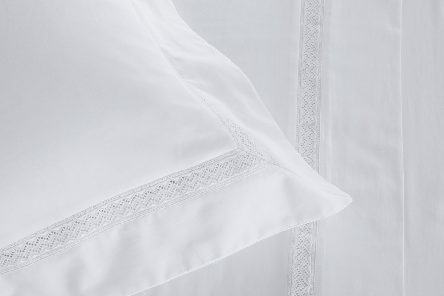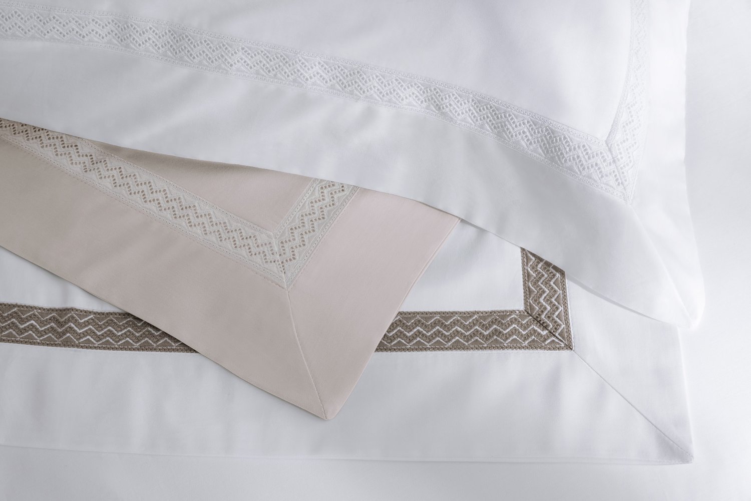 O jogo de cama Morelli transforma o seu ambiente com um bordado inspirado no movimento das ondas do mar da Sicília. As linhas geométricas do bordado não apenas evocam a fluidez das ondas, mas também trazem um toque contemporâneo e sofisticado. Cada detalhe é meticulosamente pensado para criar harmonia e proporcionar um espaço aconchegante.