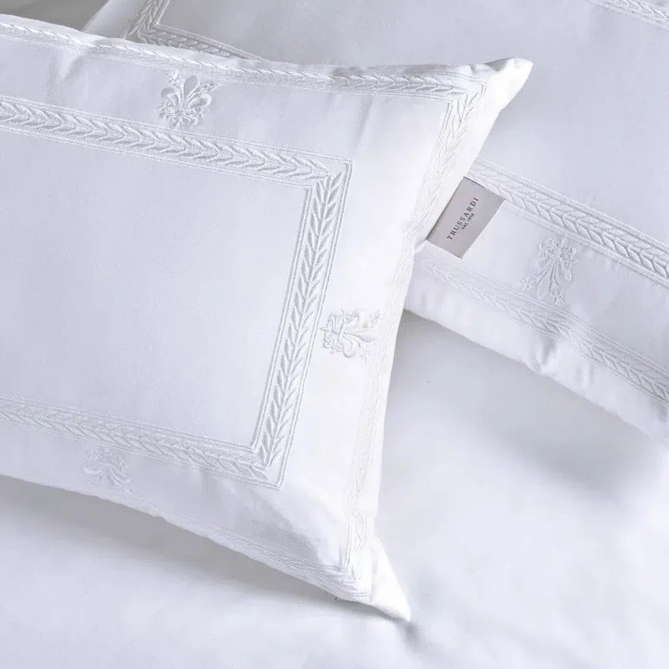 Jogo 3 Peças Capa Duvet Queen Florim 300 Fios Trussardi Branco 2,50x2,70Cor: BRANCO | Tamanho: QueenJogo De Cama Queen Florim 300 Fios Trussardi Branco 2,40 x 2,80 mCor: BRANCO | Tamanho: QueenAlmofada Florim 300 Fios Trussardi Branco 30 x 50 cmCor: BRANCO | Tamanho: 30X50