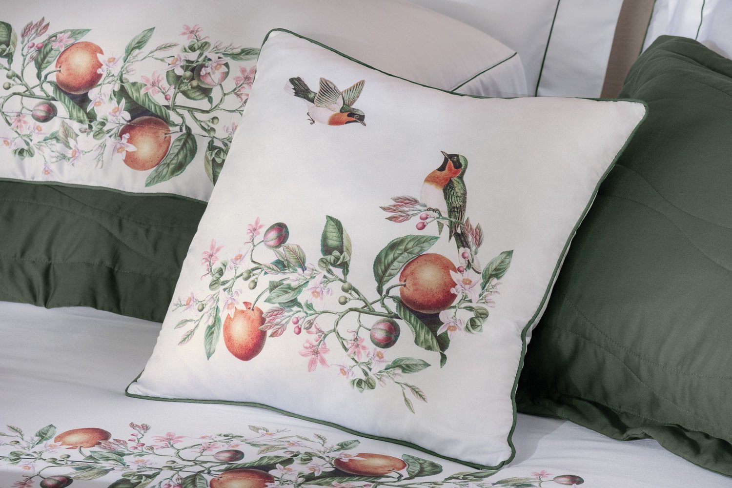 As laranjas sicilianas, com sua doçura irresistível e aroma marcante, trazem à mente a essência vibrante do Mediterrâneo. A variedade Sanguinella, com sua polpa avermelhada, é um verdadeiro tesouro da natureza. Inspirados por essa fruta encantadora, desenvolvemos o jogo de cama Arancia, cuja estamparia digital captura a alegria dos pássaros dançando entre as laranjeiras. Cada peça transforma o ambiente em um espaço acolhedor e repleto de vida, trazendo a harmonia e a luminosidade sicilianas para dentro do seu lar.