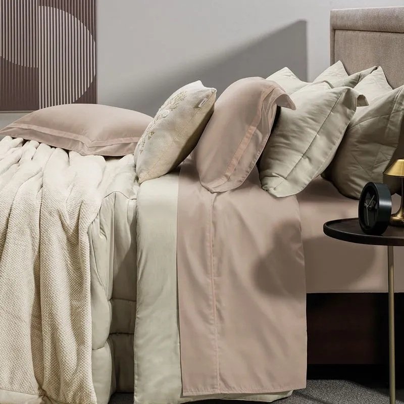 Marca Karsten Modelo Lara Material 100% Algodão / 300 Fios Cor Rosa Veludo/Nude Tamanho Queen Quantidade de Peças 04 Peças Conteúdo 01 Lençol com Elástico / 01 Sobrelençol / 02 Fronhas Medidas SobreLençol 240cm X 260cm / Lençol de Elástico 160cm x 200cm x 40cm / Fronha 50cm x 70cm