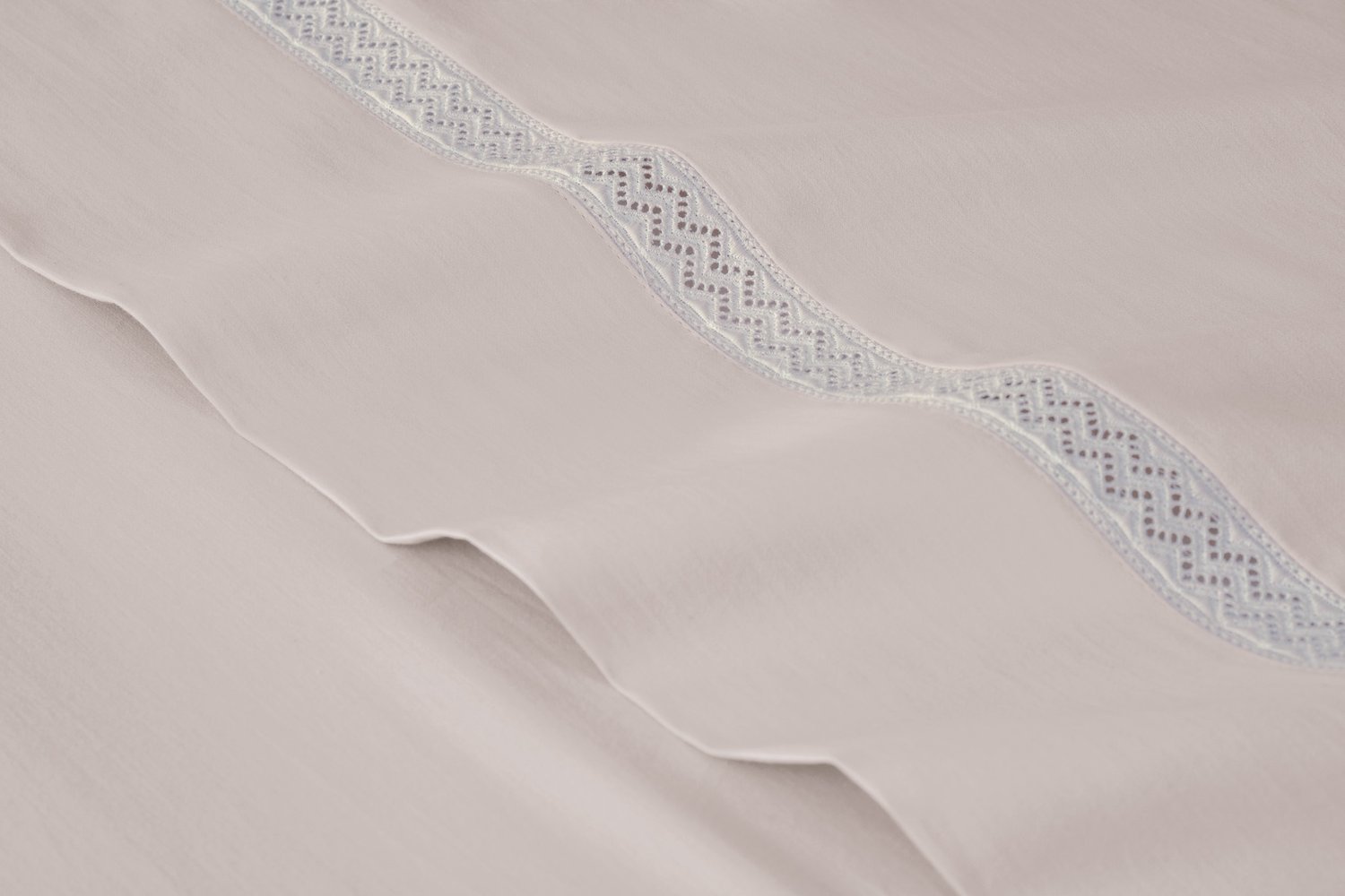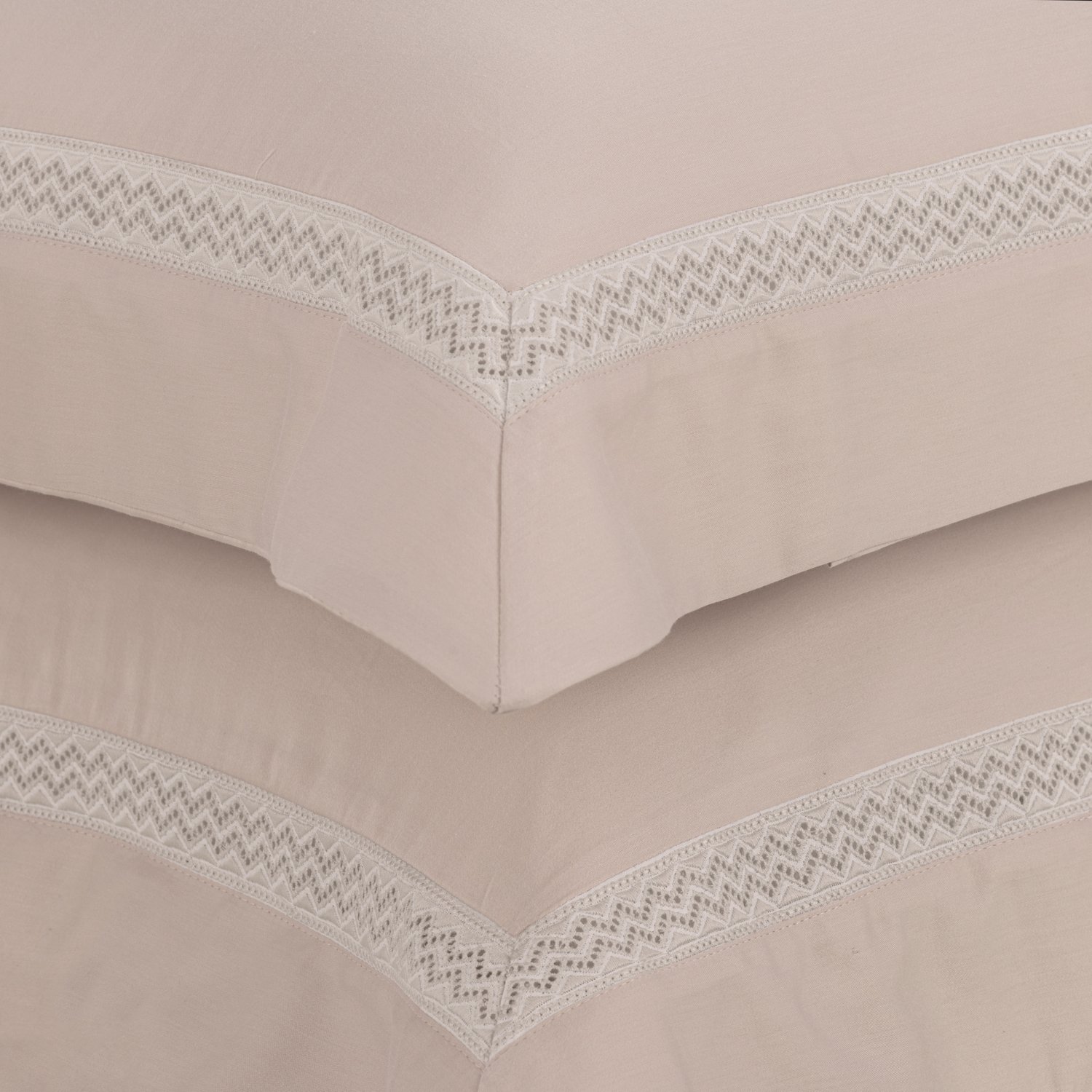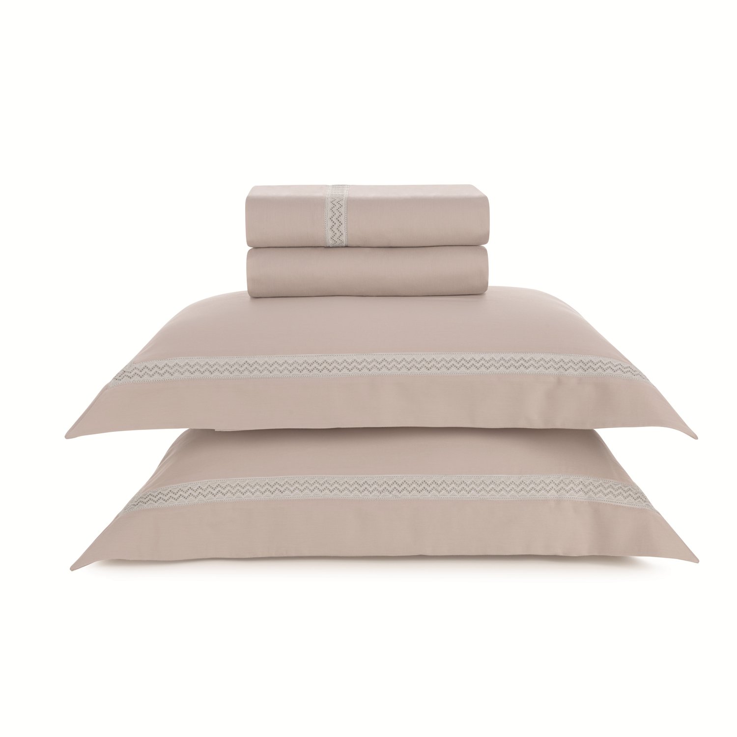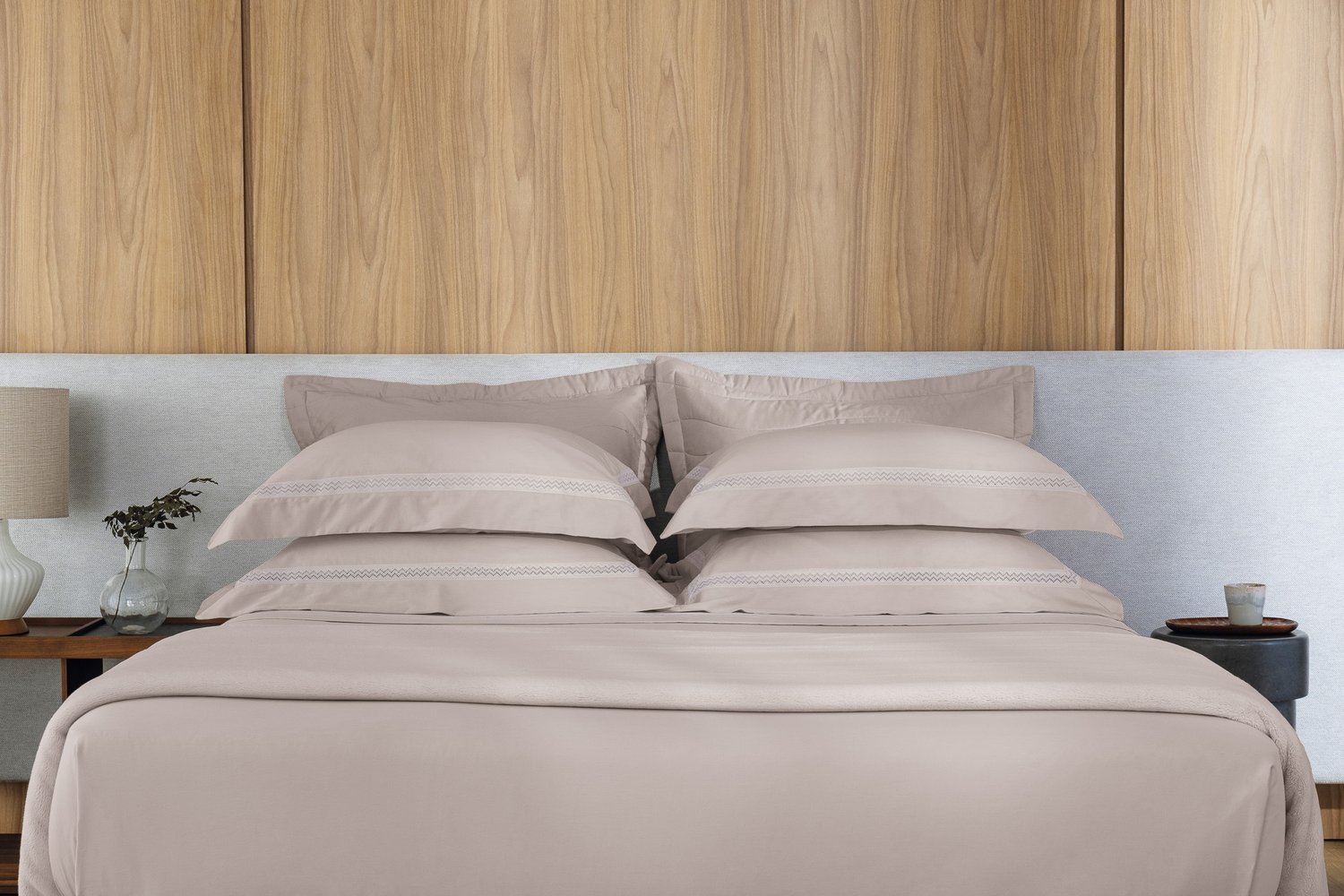 O jogo de cama Morelli transforma o seu ambiente com um bordado inspirado no movimento das ondas do mar da Sicília. As linhas geométricas do bordado não apenas evocam a fluidez das ondas, mas também trazem um toque contemporâneo e sofisticado. Cada detalhe é meticulosamente pensado para criar harmonia e proporcionar um espaço aconchegante.
