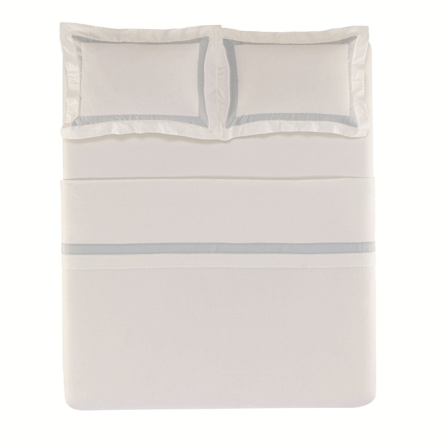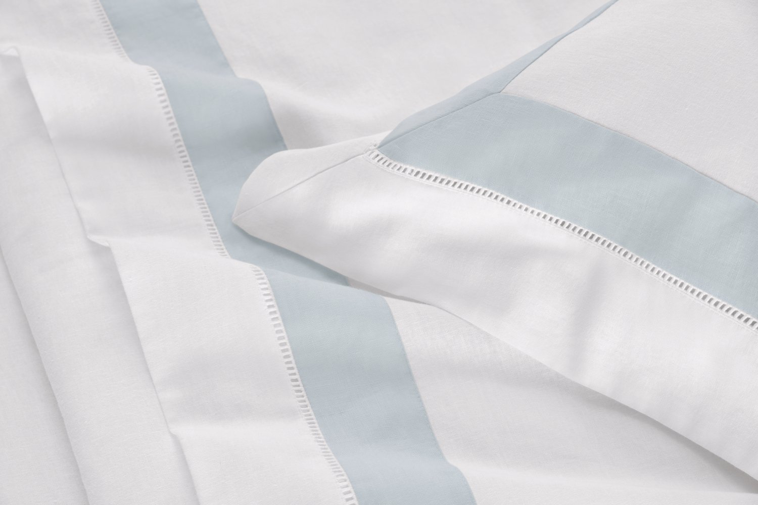 Características Adicionais: Fronhas com 4 abas / Entremeio nas abas de fronha e dobra feita do lençol / Lençol com elástico / Detalhes em tecido aplicado