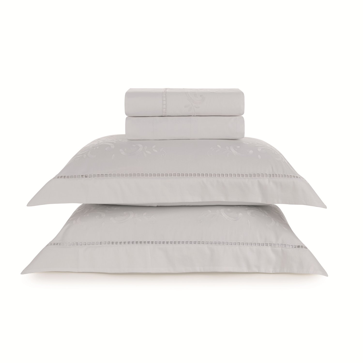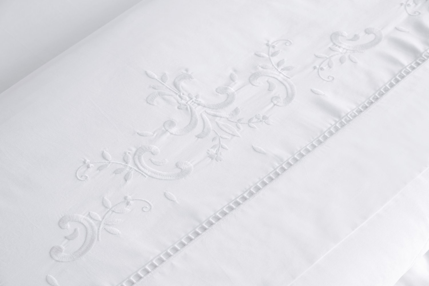 Ao passear pelas charmosas vielas da Sicília, somos imediatamente cativados pelos detalhes do artesanato local. O bordado siciliano, com sua rica tradição e técnica apurada, revela um universo de furos e movimentos orgânicos que refletem a identidade única da região. Cada peça é uma obra de arte, de história e cultura, que exalta a personalidade dos artesãos. O jogo de cama em 300 fios Siciliano é uma verdadeira celebração da habilidade e da dedicação que o bordado local exige. Ao incorporar este jogo de cama ao seu ambiente, você homenageia a rica herança cultural da Sicília, trazendo um pedacinho dessa terra encantadora para o seu dia a dia.