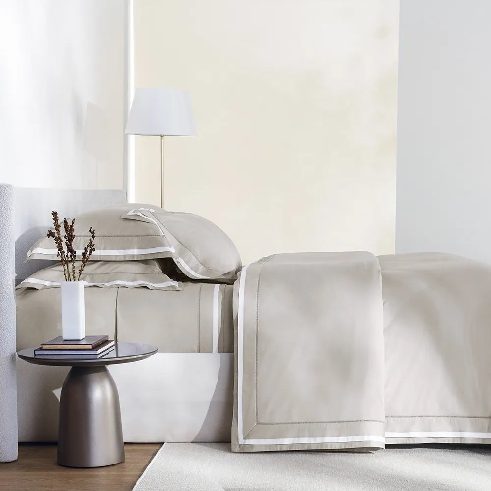 Assim como o tempo desacelera nas vilas sicilianas, o ambiente se torna um refúgio de tranquilidade. Os tecidos suaves, as tramas precisas e os acabamentos refinados evocam o conforto de um lar que acolhe com leveza. É uma coleção pensada para celebrar o descanso como experiência sensível, onde o toque é memória, o silêncio é poesia, e cada noite carrega o encanto de um novo começo.