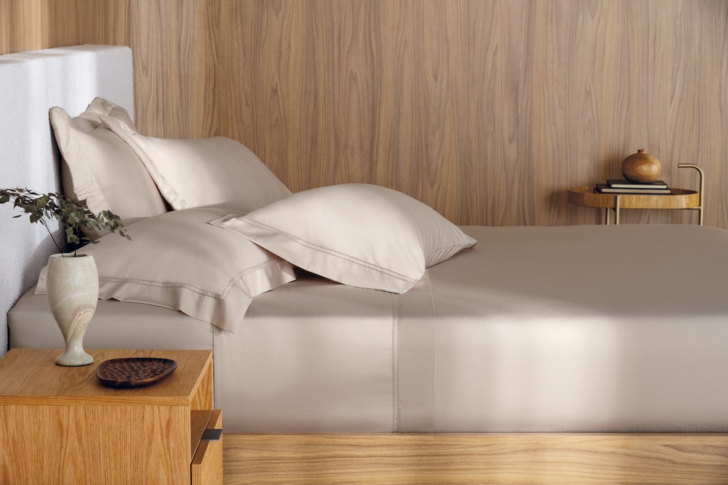 A cama Galieno segue um design que sempre está em voga. Enobrecida com detalhes em ponto ajour e a qualidade do Cetim 300 fios, a cama revela a busca pela essência Trussardi: preza pelo conforto aliado a detalhes que fazem a diferença. Tratando-se de uma peça atemporal, suas cores neutras inspiram a coordenar com outros itens da coleção.