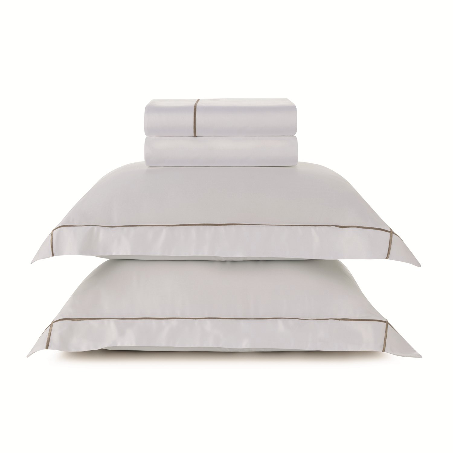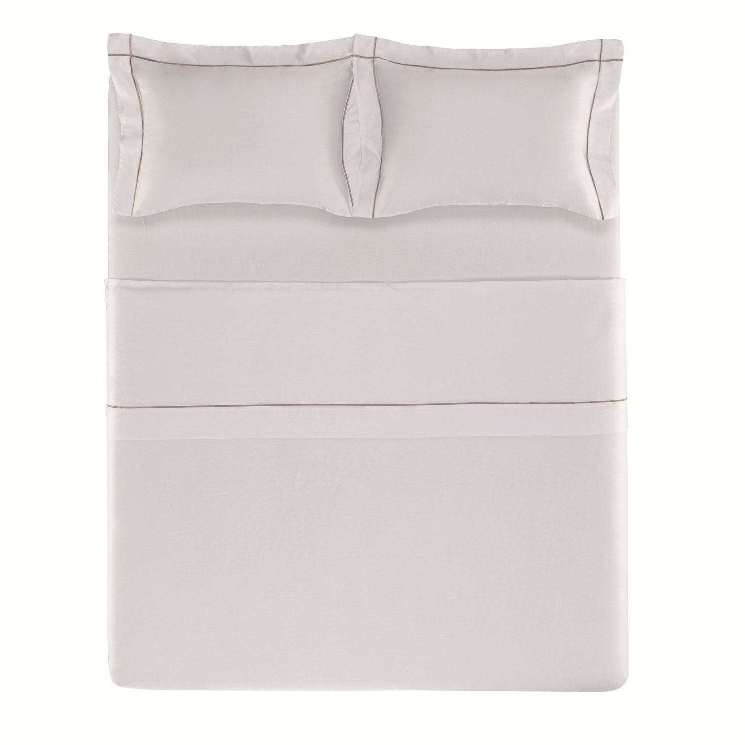 Jogo Cama Super King Girelli Bambu 300 Fios Trussardi Branco e Nocciola 280cm x 280cm
