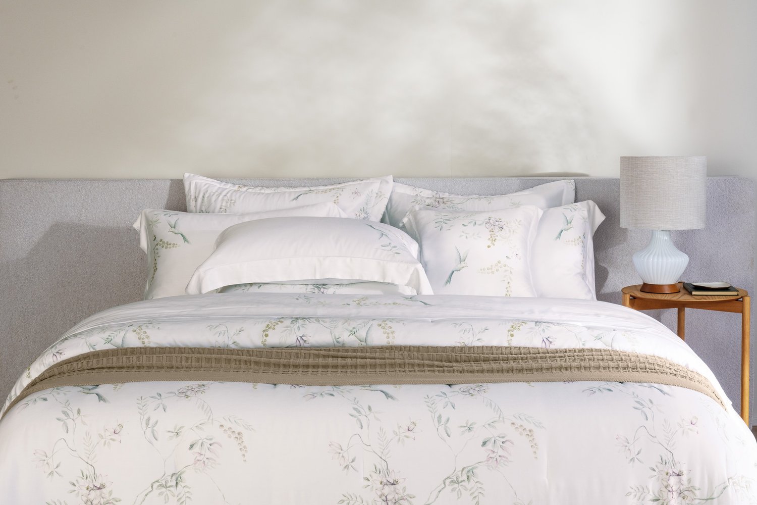 Lady Florence Trevelyan, uma jardineira apaixonada pela natureza, transformou a ilha de Isola Bella em um jardim suspenso sobre as águas, um refúgio singular entre o mar, fauna e flora. As pinceladas manuais desta estampa refletem essa poesia, acompanhadas por pássaros que dançam ao sabor da brisa. Impressos sobre a delicadeza do tecido em bambu, trazem um toque fresco e leve a sua rotina, convidando você a criar memórias afetivas.