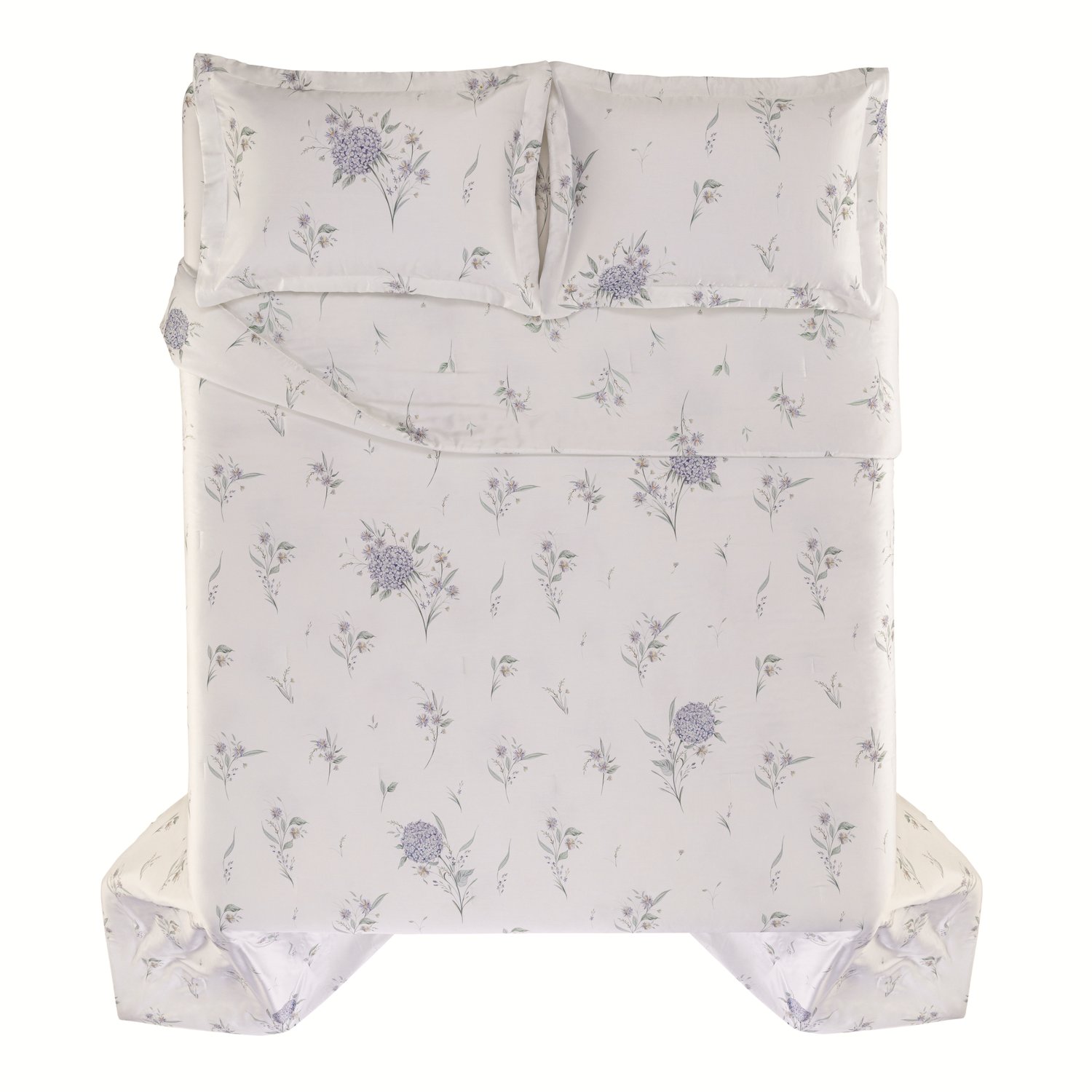 Características Adicionais: Estamparia digital / Fronha com 4 abas e acabamento em ponto ajour / Dobra feita estampada e acabamento em ponto ajour / Colcha e porta-travesseiro estampados / Lençol de elástico estampado