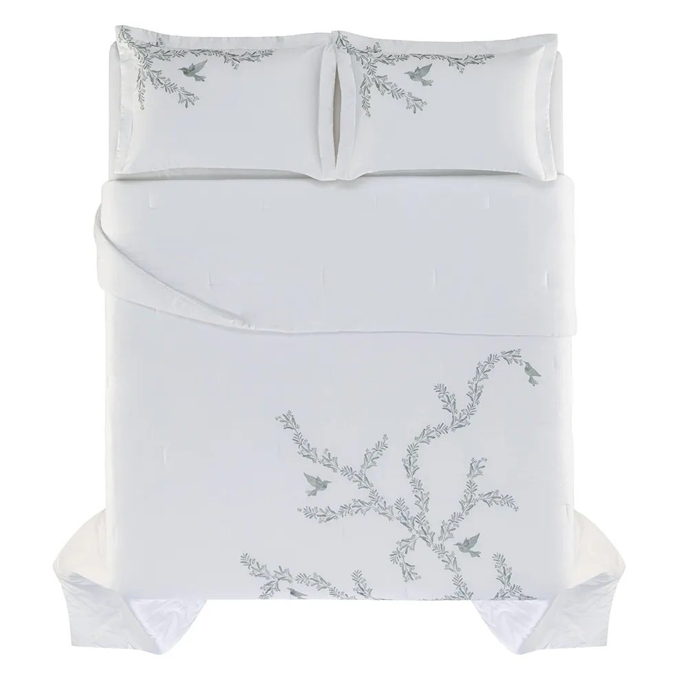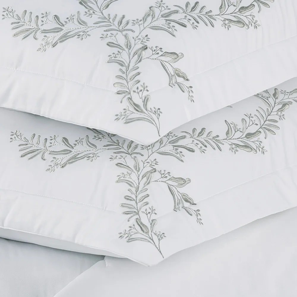 O bordado deste jogo de cama é inspirado no cultivo do pistache da cidade de Bronte. Localizada nas encostas do Monte Etna, a região possui um solo vulcânico rico, que proporciona condições ideais para o crescimento desse pistache de qualidade ímpar. Sua cor singular, sabor inigualável e aroma marcante o tornam um produto altamente desejado. Ao trazer essa inspiração para o bordado, a cama não apenas se torna um elemento decorativo, mas também uma forma de transmitir frescor e romantismo. A combinação de elegância e personalidade que este bordado oferece transforma qualquer ambiente em um refúgio acolhedor, onde a rotina ganha um toque especial e sofisticado.