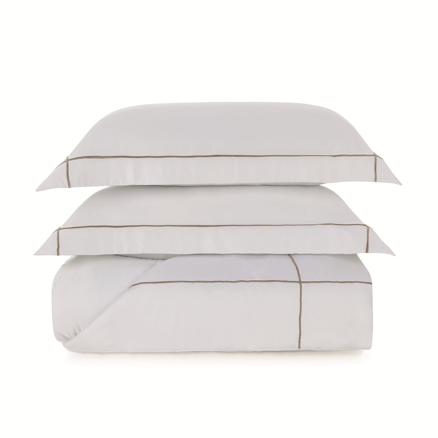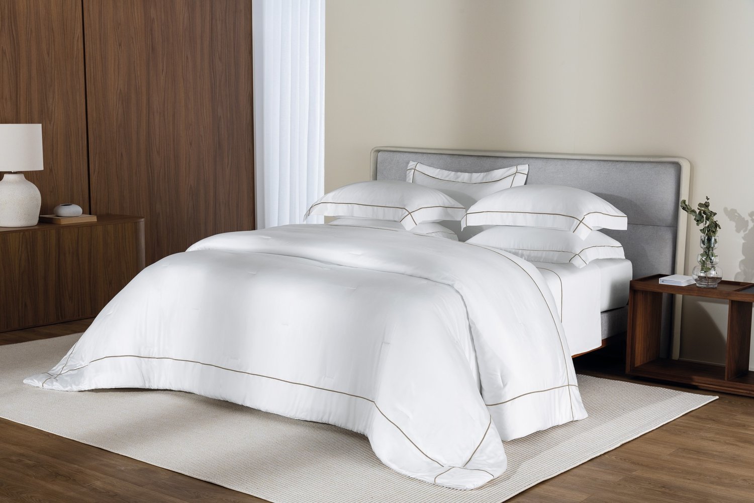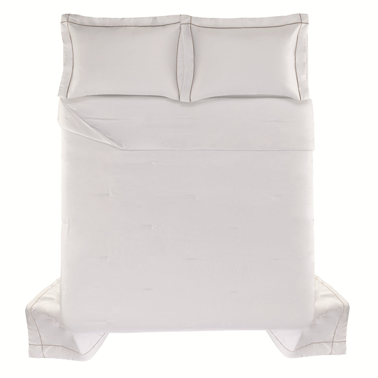 Jogo Colcha Super King Girelli Bambu 300 Fios Trussardi Branco e Nocciola 310cm x 280cm