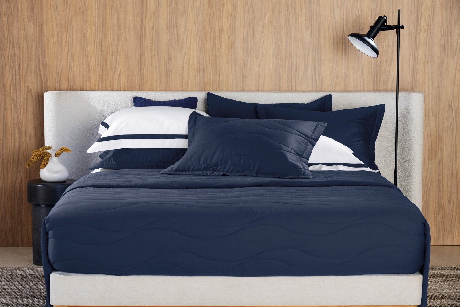 A colcha Novara é uma excelente opção para quem não abre mão da elegância sem perder a funcionalidade. A padronagem de ondas em cetim 300 fios, e as cores sóbrias cuidadosamente escolhidas, propõem composições de fácil coordenação com demais itens da coleção, permitindo graça e beleza às suas escolhas.