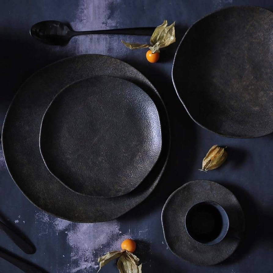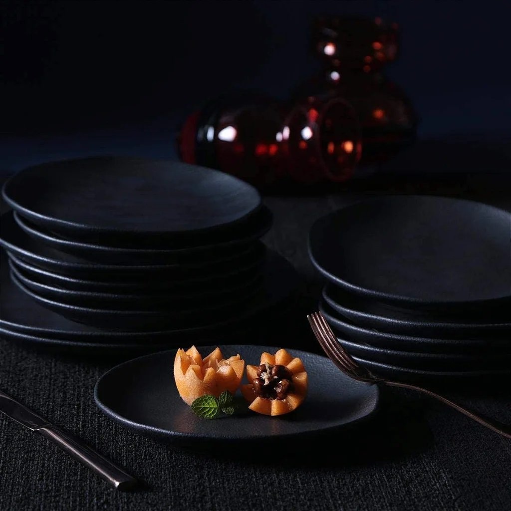 Jogo de 06 Pratos de Sobremesa Orgânico Porto Brasil Preto Matte