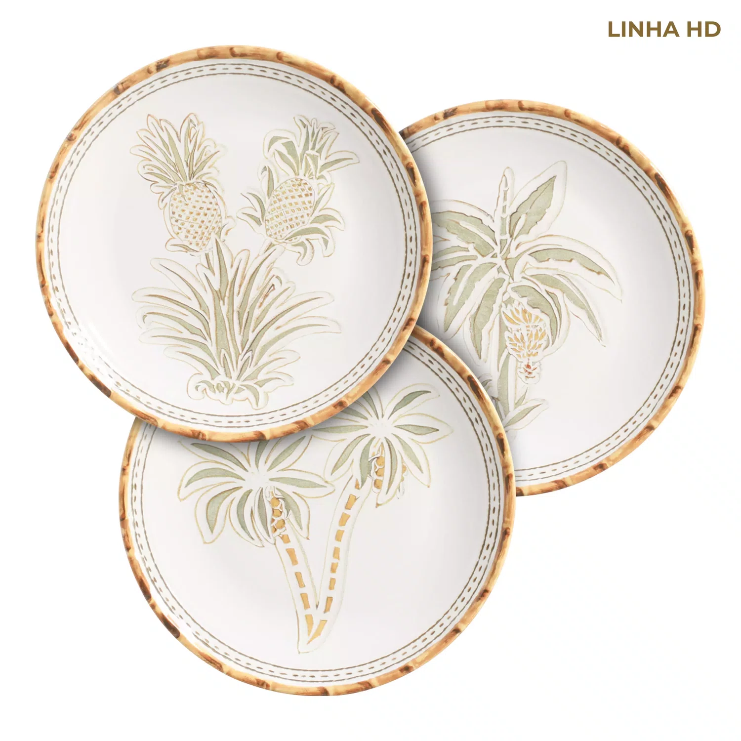 Jogo de 06 Pratos Rasos Coqueiro Maison Blanche 27,5 cm