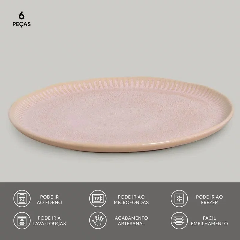 Conjunto Com 6 Pratos Raso Linhas Litchi Ø27,5cm
