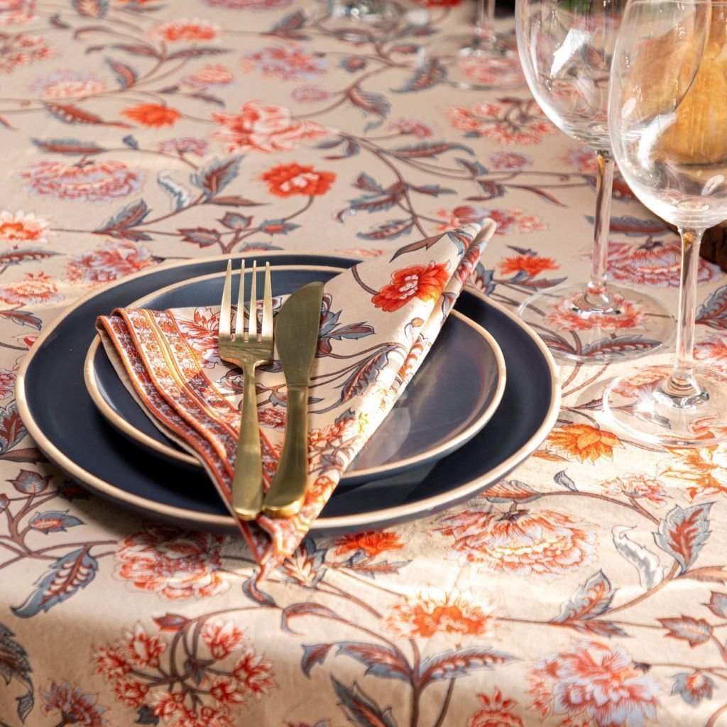 Guardanapos Marigold 4 peças da coleção Copa&Cia inspirada na Índia. Feitos com tecido 100% algodão, estes guardanapos não apenas oferecem qualidade superior, mas também trazem consigo a rica herança cultural e visual da Índia.