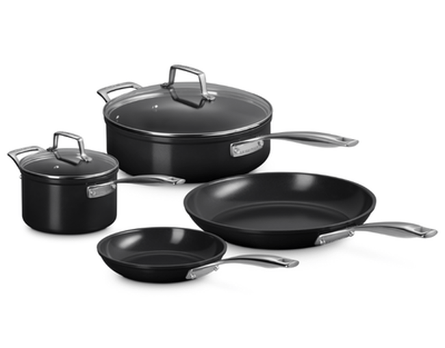 Material Cerâmica Antiaderente Essential Composição 1 frigideira rasa 20cm, 1 frigideira rasa 28cm, 1 molheira com tampa 18cm, 1 frigideira saute com tampa 26cm Fonte de Calor Vitrocerâmico, Indução, Elétrico, Gás, Radiante, Grill, Forno Modo de Lavagem Lava Louças, Lavagem a Mão