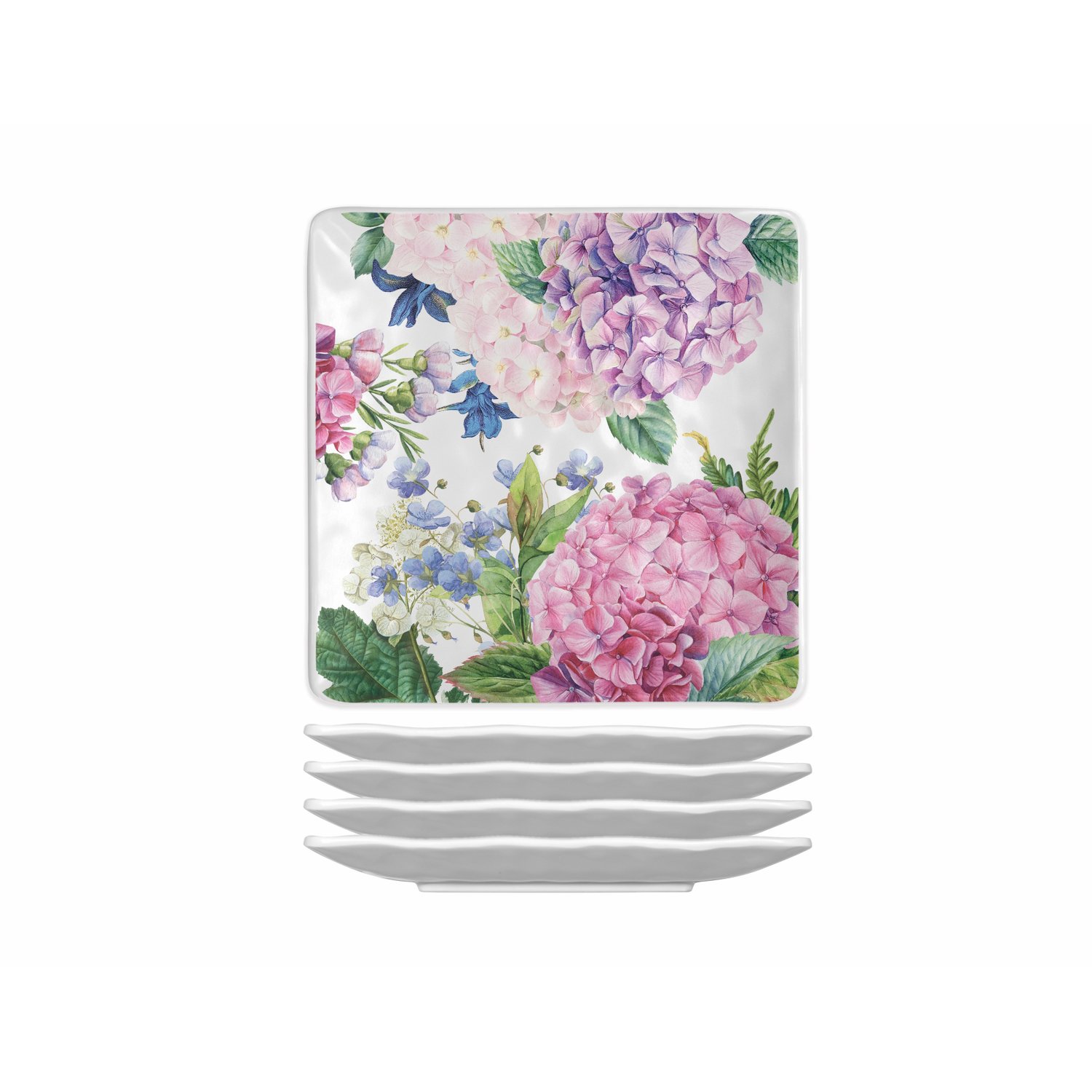 Informações do Produto Marca Michel Design Works Cor Estampado Modelo Wild Hydrangea Material Melamina Quantidade de Peças 04 Pratos Composição 15,2 x 15,2 x 2,5cm