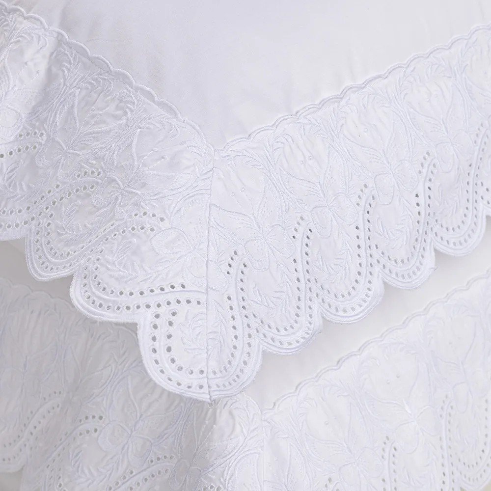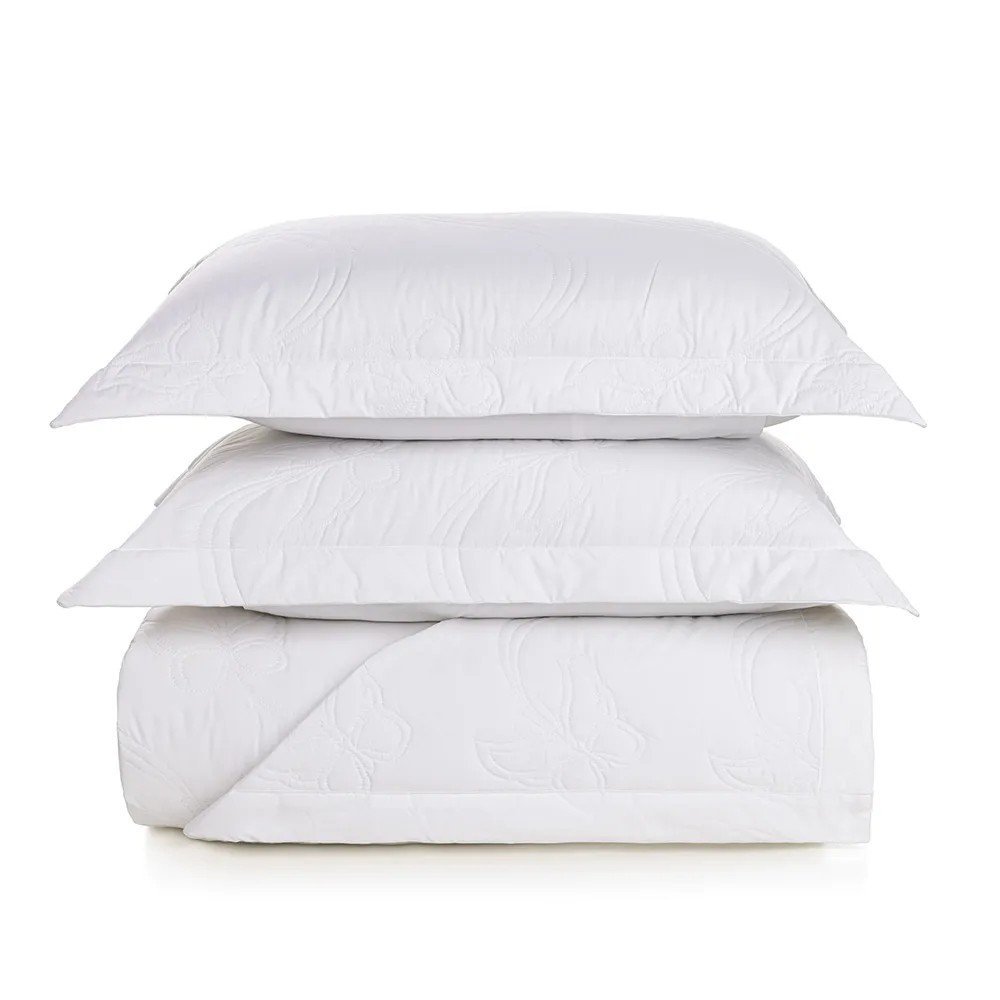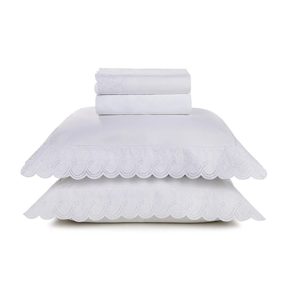 A cama Farfalla Queen traduz a leveza e a delicadeza das borboletas em um convite ao descanso perfeito. Inspirado no encanto do Giardino delle Rose, ele transforma o quarto com serenidade e sofisticação. O lençol de elástico, com medidas de 1,60m x 2,00m x 45cm, se ajusta com perfeição, enquanto o sobrelençol de 2,40m x 2,80m proporciona um caimento impecável. As fronhas de 50cm x 70cm, com três abas, canto inglês e tiras bordadas aplicadas, acrescentam um toque romântico e refinado. Feito em percal 200 fios de algodão 100% na cor branca, Farfalla é a união perfeita entre suavidade, elegância e máximo conforto, criando um ambiente acolhedor e encantador.