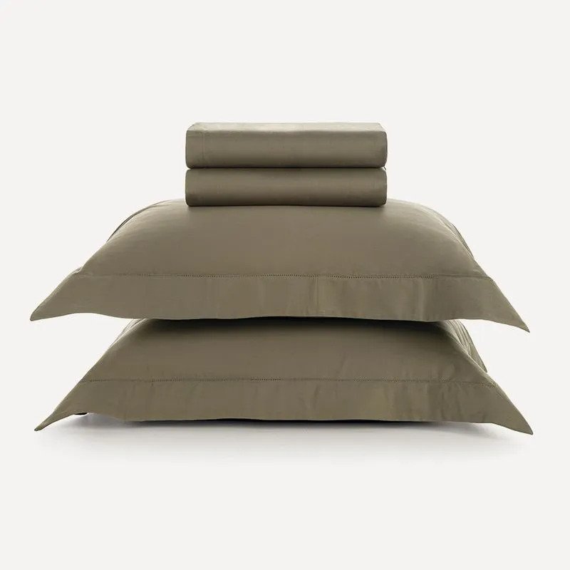 INFORMAÇÕES Marca Karsten Cor Oliva Tamanho Casal Quant. Fios 300 Fios Quant. Peças 4 Peças Composição 100% Algodão Toque Toque Supremo | Algodão egípcio 300 fios Itens Inclusos 1 Lençol de Elástico * 1 Sobrelençol * 2 Fronhas Medidas Sobrelençol: 2,20m x 2,60m * Lençol de Elástico: 1,40m x 1,90m x 40cm * Fronha: 50cm x 70cm Acabamento Tinto Descrição Visual Jogo de camade 4 peças em cor única de verde oliva com ponto ajour na dobra e nas abas da fronha. CUIDADOS E USO * Lave tipos de tecidos distintos separadamente * Não lave cores claras e cores escuras no mesmo ciclo * Lave as peças no ciclo leve, suave ou delicado de sua lavadora * Enxágue as peças com bastante água * Utilize a quantidade mínima de amaciante e sabão * Leia atentamente as instruções na etiqueta. Observação Pode haver pequena variação de cor, de acordo com a configuração e modelo do monitor ou do aparelho celular. Consultar a cor nas especificações técnicas do produto.