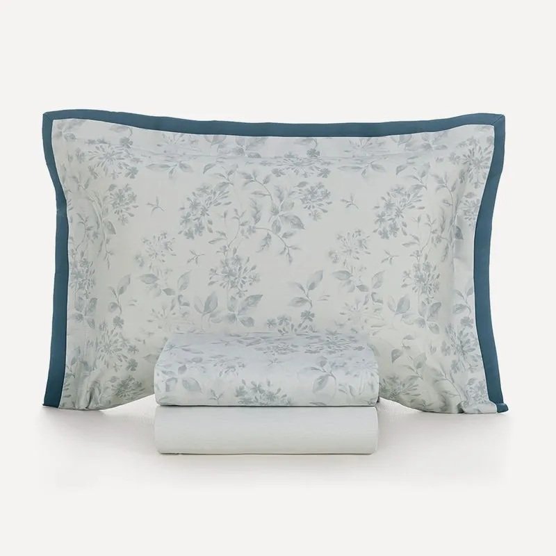 Delicado e envolvente, o jogo de cama Ellie apresenta floral aquarelado em tons de azul acinzentado, criando uma atmosfera de calma e leveza. As fronhas possuem aba dupla, com coordenação com itens da cama Bossa na cor Índigo, permitindo composições com personalidade. Confeccionado em cetim 300 fios de algodão egípcio, combina suavidade ao toque com visual refinado. Ideal para transformar o quarto em um espaço sereno, aconchegante e acolhedor.