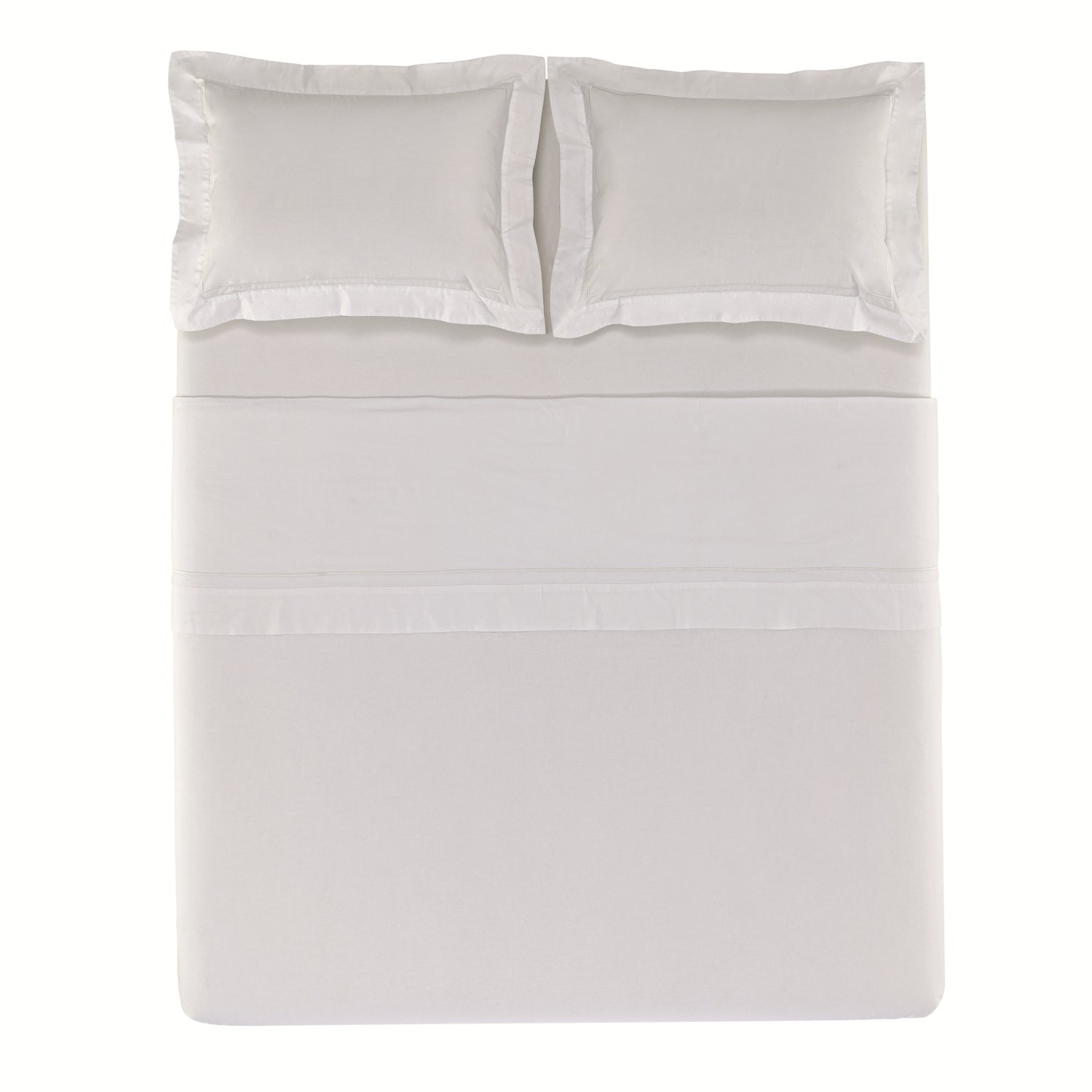 Informações do Produto Tipo: Branco Acabamento: Tecido sanforizado e mercerizado Linha: Fiesole Marca: Trussardi Material: Percal 200 Fios / 100% Algodão Características Adicionais: Fronha com 4 abas contrastantes e ponto royal / Sobre lençol com detalhe contrastante e ponto royal / Lençol com elástico Conteúdo: 1 Lençol de Baixo com Elástico / 1 Lençol de Cima / 2 Fronhas Instruções De Lavagem: Lavação a 40ºC / Proibido alvejar / Proibido secar em tambor / Secagem em varal / Ferro de passar com temperatura máxima de 110º C / Proibido lavar a seco.