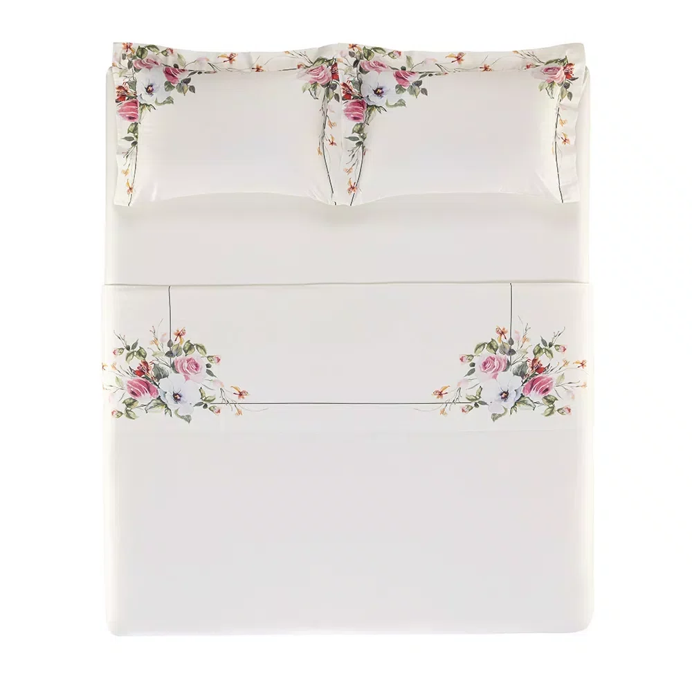 Informações do Produto Marca Trussardi Linha Rosette Cor Estampado Material Cetim 300 fios, 100% Algodão Egípcio Acabamento Estamparia Digital, Arte fatto à mano in Italia, Fronha com 3 abas e estampa dimensionada, Dobra feita estampada e sobre lençol tinto. Tamanho Casal Quantidade de Peças 04 peças Composição 1 Lençol de Baixo com elástico Medidas Sobre Lençol: 2,20m x 2,80m, Lençol de Elástico: 1,60m x 2,00m x 40cm, Fronha: 50cm x 70cm