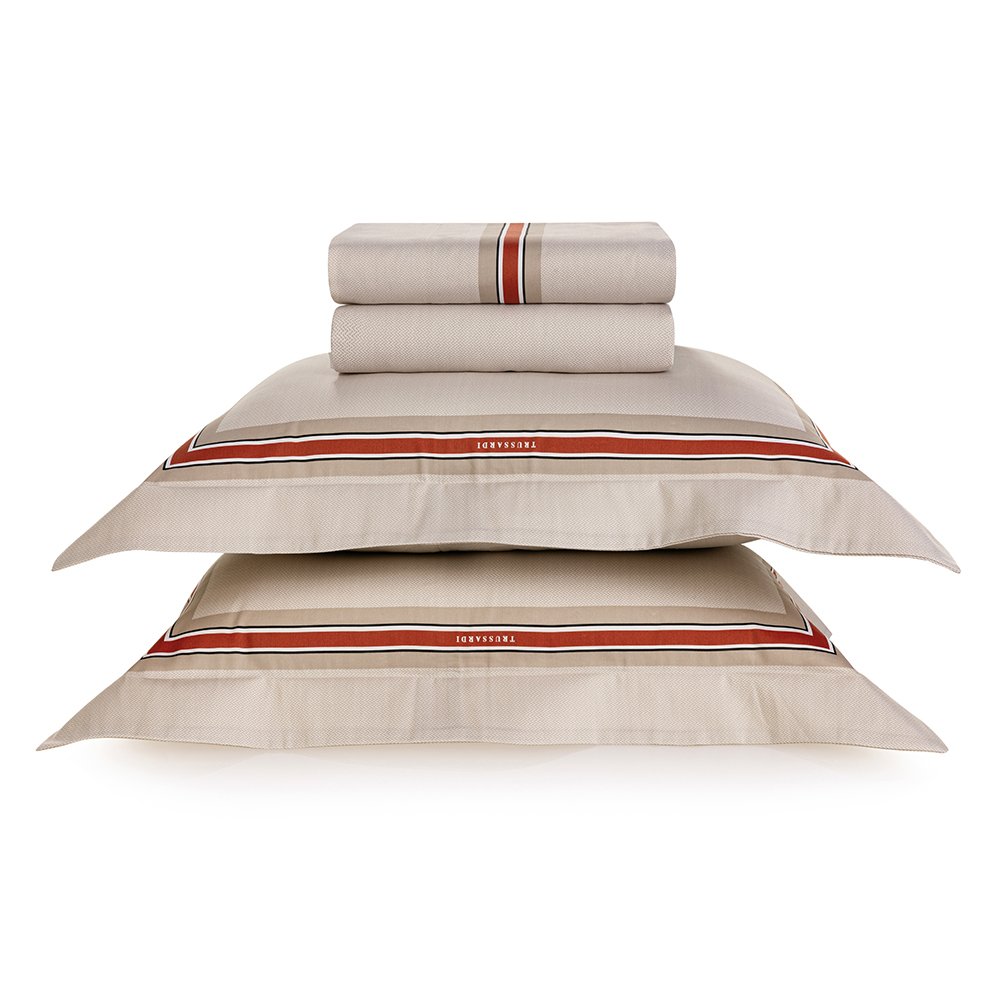 Inspirado no Castelo Del Monte, em Murgia na Puglia, o jogo de cama Del Monte possui uma estampa que retrata a arquitetura local, com formas retas e linhas, e seus tons terrosos, branco e bege o tornam mais discreto e sofisticado.
