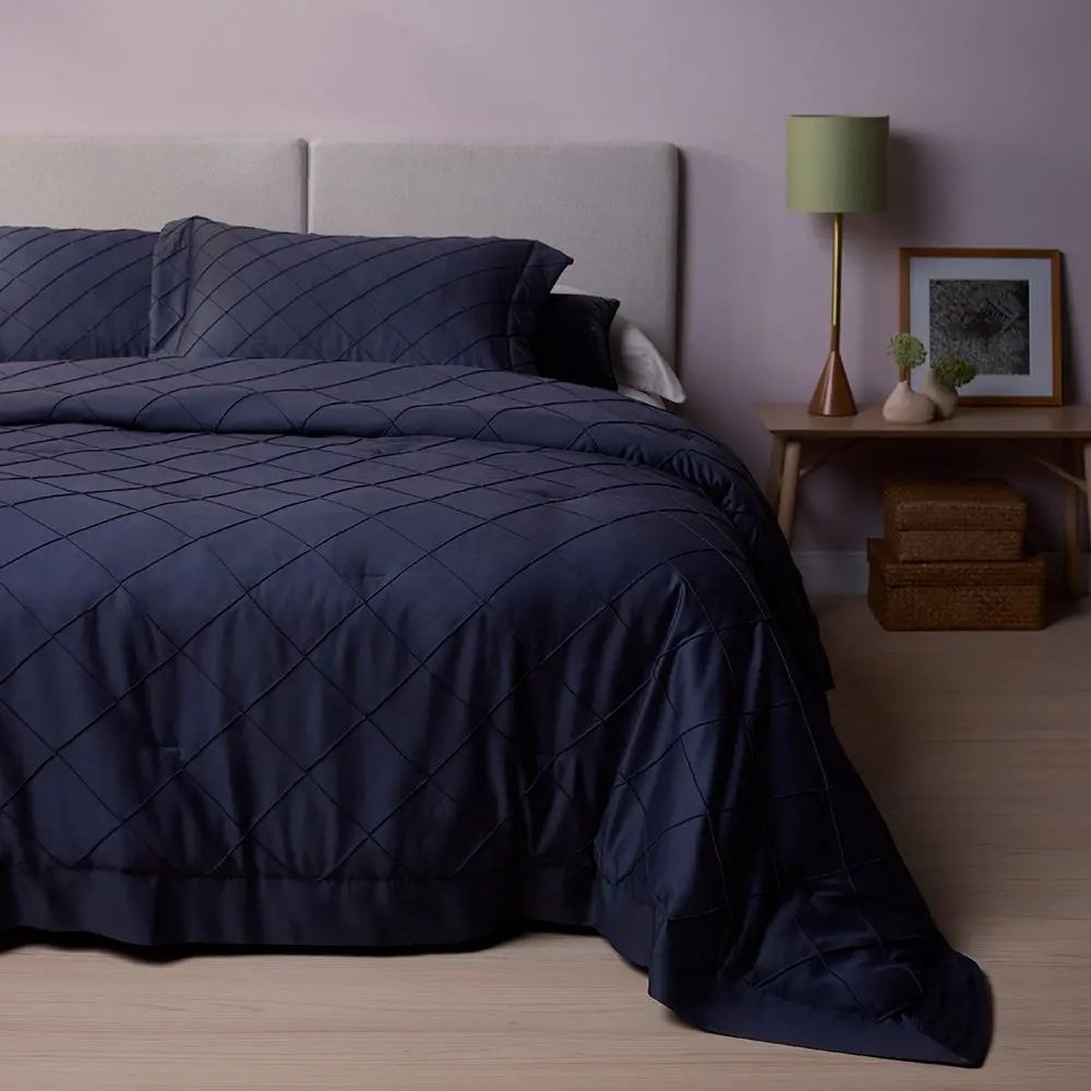 Cor: Cinza Lunar Marca: Buddemeyer Luxus Conteúdo: 1 sobrelençol 240cm x 280cm / 1 lençol 160cm x 200cm x 40cm / 2 fronhas 50cm x 70cm Composição: tecido 400 fios / 100% algodão, fio penteado Tipo de Material: tecido 400 fios / 100% algodão, fio penteado Instruções de Cuidado: Cores escuras devem ser lavadas separadas das cores claras / Lavar em água fria ou em temperatura de até 60°C / O melhor sabão para manter as características do produto é o de coco ou neutro / Não colocar sabão diretamente no produto / Evite alvejantes e quaisquer produtos a base de cloro, eles atacam o corante dos tecidos / Não exagere no uso de sabão em pó e use pouco amaciante / Permite secadora em temperatura baixa / Temperatura máxima da base do ferro 110°C / Não usar ferro a vapor / Não lavar a seco