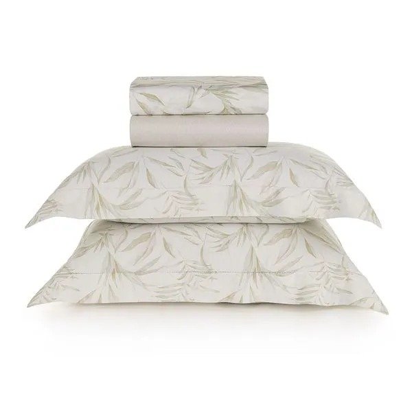 O Jogo de Cama Queen Dimitri 4 peças une conforto e sofisticação para transformar seu quarto. Confeccionado em 100% algodão egípcio de 300 fios, oferece toque macio, alta respirabilidade e é hipoalergênico, ideal para noites tranquilas. Inclui um sobre lençol estampado com dobra feita de 2,40m x 2,60m, um lençol com elástico de 1,60m x 2,00m x 40cm e duas fronhas 50cm x 70cm com três abas de 7 cm e ponto ajour, garantindo acabamento impecável. A estampa em tons de verde traz frescor e versatilidade, permitindo combinações elegantes. Uma escolha perfeita para renovar o aconchego do seu lar com qualidade e estilo Karsten.