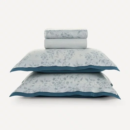 Delicado e envolvente, o jogo de cama Ellie apresenta floral aquarelado em tons de azul acinzentado, criando uma atmosfera de calma e leveza. As fronhas possuem aba dupla, com coordenação com itens da cama Bossa na cor Índigo, permitindo composições com personalidade. Confeccionado em cetim 300 fios de algodão egípcio, combina suavidade ao toque com visual refinado. Ideal para transformar o quarto em um espaço sereno, aconchegante e acolhedor.