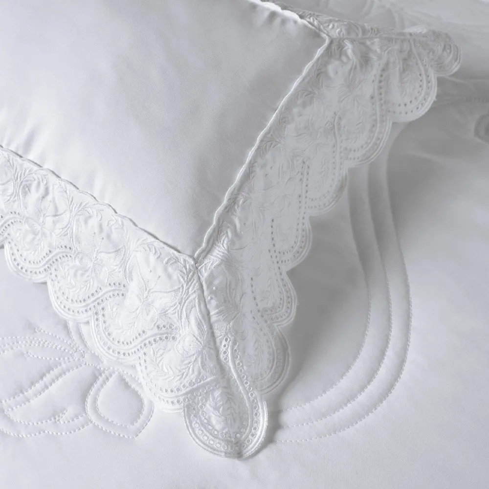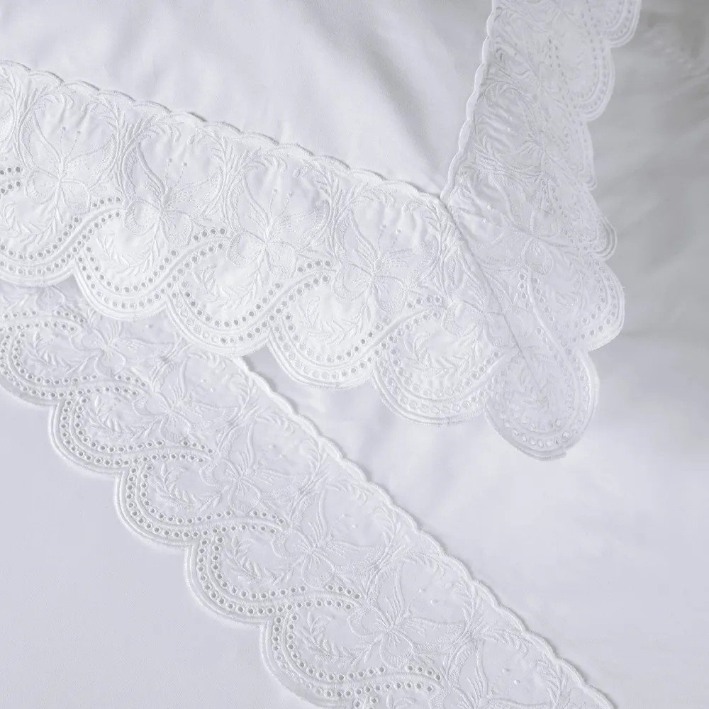 O jogo de cama Farfalla Queen traduz a leveza e a delicadeza das borboletas em um convite ao descanso perfeito. Inspirado no encanto do Giardino delle Rose, ele transforma o quarto com serenidade e sofisticação. O lençol de elástico, com medidas de 1,60m x 2,00m x 45cm, se ajusta com perfeição, enquanto o sobrelençol de 2,40m x 2,80m proporciona um caimento impecável. As fronhas de 50cm x 70cm, com três abas, canto inglês e tiras bordadas aplicadas, acrescentam um toque romântico e refinado. Feito em percal 200 fios de algodão 100% na cor branca, Farfalla é a união perfeita entre suavidade, elegância e máximo conforto, criando um ambiente acolhedor e encantador.
