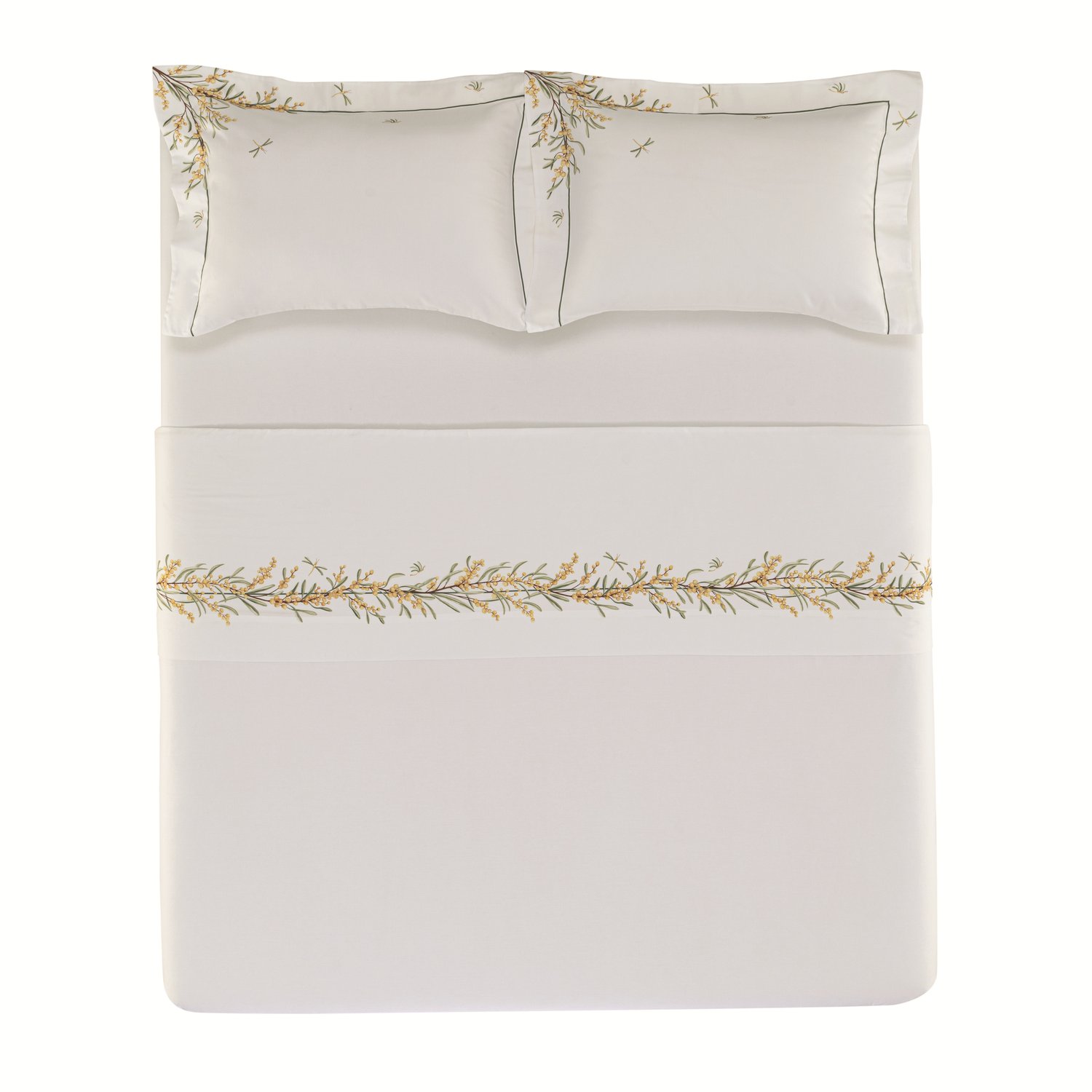 As belas árvores de mimosa que nos recebem ao entrar na Isola Bella inspiraram a criação deste jogo de cama com pinceladas em aquarela. Cada detalhe captura a essência desse charmoso lugar, trazendo uma aura de harmonia, alegria e elegância ao seu espaço. É uma oportunidade perfeita para transformar o ambiente, infundindo nele uma energia refrescante e acolhedora. Deixe-se envolver por essa combinação única de cores e sensações, e permita que sua casa se torne um refúgio de bem-estar e inspiração.