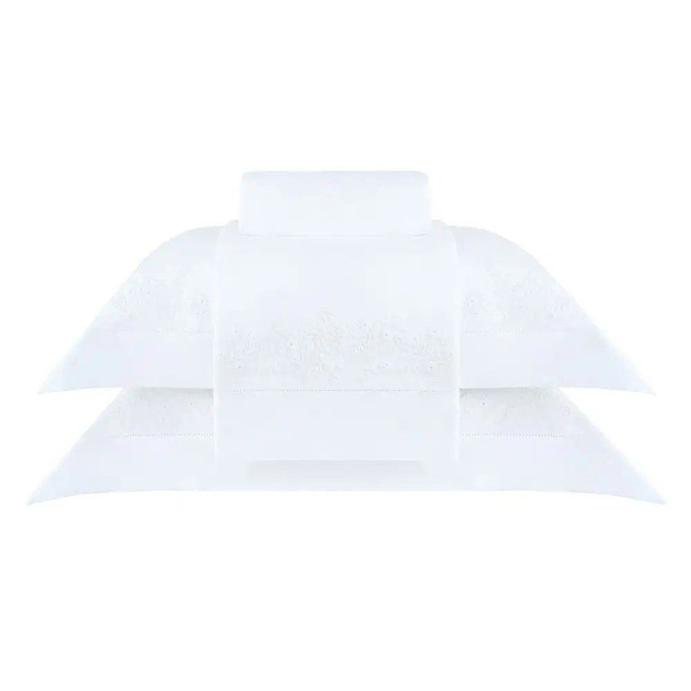 Cor: Branco Marca: Buddemeyer Luxus Conteúdo: 1 sobrelençol 260cm x 290cm / 1 lençol 160cm x 200cm x 40cm / 2 fronhas 50cm x 70cm Composição: tecido 400 fios / 100% algodão / fio penteado Tipo de Material: tecido 400 fios / 100% algodão / fio penteado Instruções de Cuidado: Cores escuras devem ser lavadas separadas das cores claras / Lavar em água fria ou em temperatura de até 60°C / O melhor sabão para manter as características do produto é o de coco ou neutro / Não colocar sabão diretamente no produto / Evite alvejantes e quaisquer produtos a base de cloro, eles atacam o corante dos tecidos / Não exagere no uso de sabão em pó e use pouco amaciante / Permite secadora em temperatura baixa / Temperatura máxima da base do ferro 110°C / Não usar ferro a vapor / Não lavar a seco