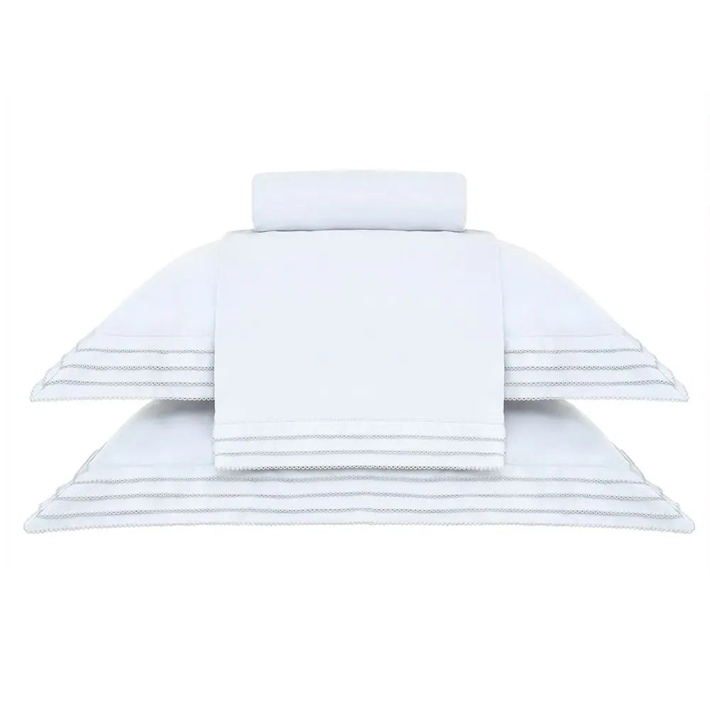 Fronhas dispõe de abas nos três lados e o lençol possui elástico. Jogo de cama Buddemeyer Luxus Palladio, produzido em cetim 400 Fios, 100% algodão fio penteado. Exclusividade Buddemeyer Luxus.