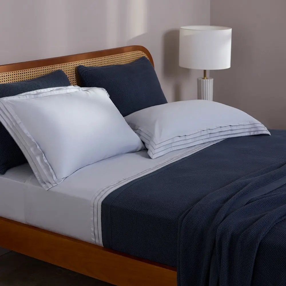 Cor: Azul Frost/Azul Marca: Buddemeyer Luxus Conteúdo: 1 sobrelençol 240cm x 280cm / 1 lençol 160cm x 200cm x 40cm / 2 fronhas 50cm x 70cm Composição: tecido 400 fios / 100% algodão / fio penteado Tipo de Material: tecido 400 fios / 100% algodão / fio penteado Instruções de Cuidado: Cores escuras devem ser lavadas separadas das cores claras / Lavar em água fria ou em temperatura de até 60°C / O melhor sabão para manter as características do produto é o de coco ou neutro / Não colocar sabão diretamente no produto / Evite alvejantes e quaisquer produtos a base de cloro, eles atacam o corante dos tecidos / Não exagere no uso de sabão em pó e use pouco amaciante / Permite secadora em temperatura baixa / Temperatura máxima da base do ferro 110°C / Não usar ferro a vapor / Não lavar a seco