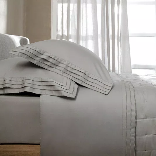 Jogo de cama queen Palladio - Buddemeyer Luxus. Um clássico da alfaiataria com sofisticado acabamento em pregas na vira do sobrelençol e fronhas. Tecido nobre, com corte e caimento impecável e toque acetinado extremamente macio. A Buddemeyer é referência em qualidade e estilo.