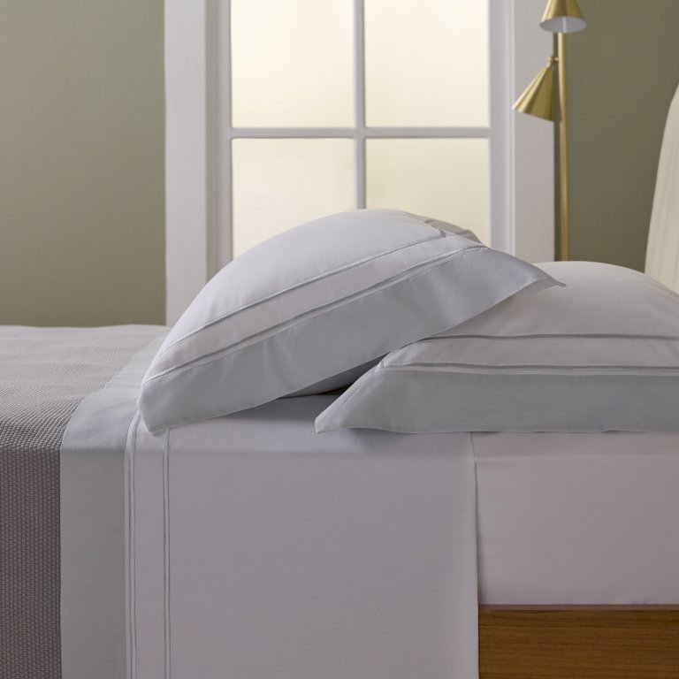 Jogo de cama Buddemeyer Luxus Sávile - Inspirada na alfaiataria, a Coleção Sávile possui design sofisticado, tornando a decoração da cama harmoniosa e elegante. Sua moldura em tecido contrastante e duplo ponto cheio, cria toque de brilho ao fundo branco, com visual alinhado e repleto de refinamento. Em 400 fios de cetim de puro algodão, o modelo possui toque delicado com elevada maciez, trazendo conforto e muito aconchego.